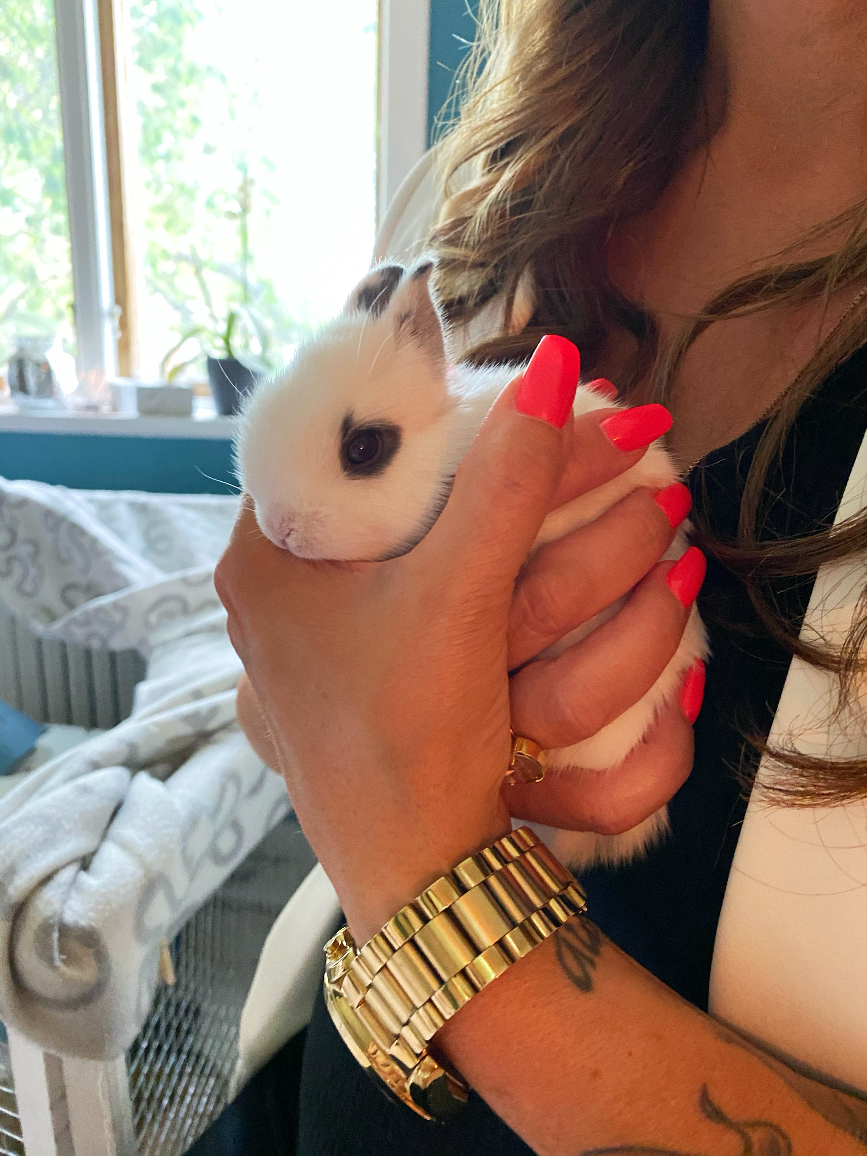 Majas kanin har nyligen fått massa ulliga tussiga kaninungar. Jag höll på att smälla av så söta dom var. Hade lätt kunnat stoppa en i fickan och tagit med hem. Ååååh…. ❤️