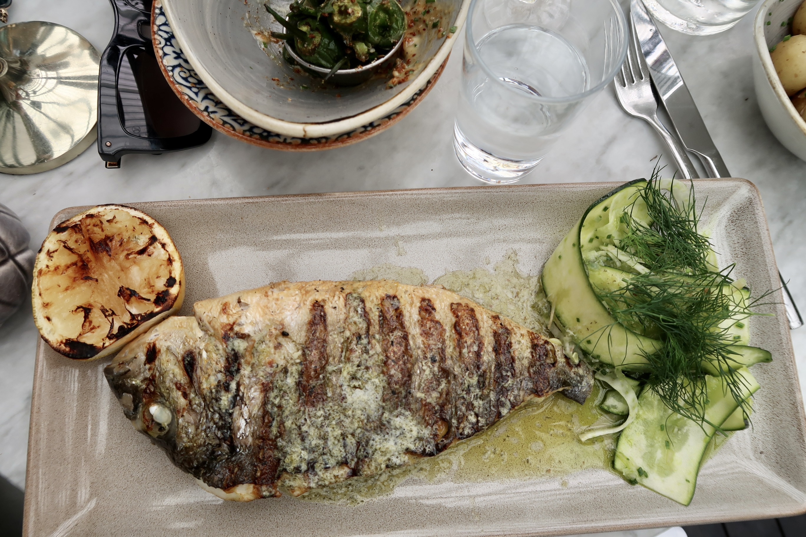Häromdagen gjorde jag hel fisk i ugn,guldsparid liknar den fisk du åt. Även makrill gör jag i ugn. Jag lagar också hel med huvud och ben. För att man får ut mer smak då. Så jag förstår restaurangen. Älskar äta fisken huvud,fiskkind är en delikatess:)