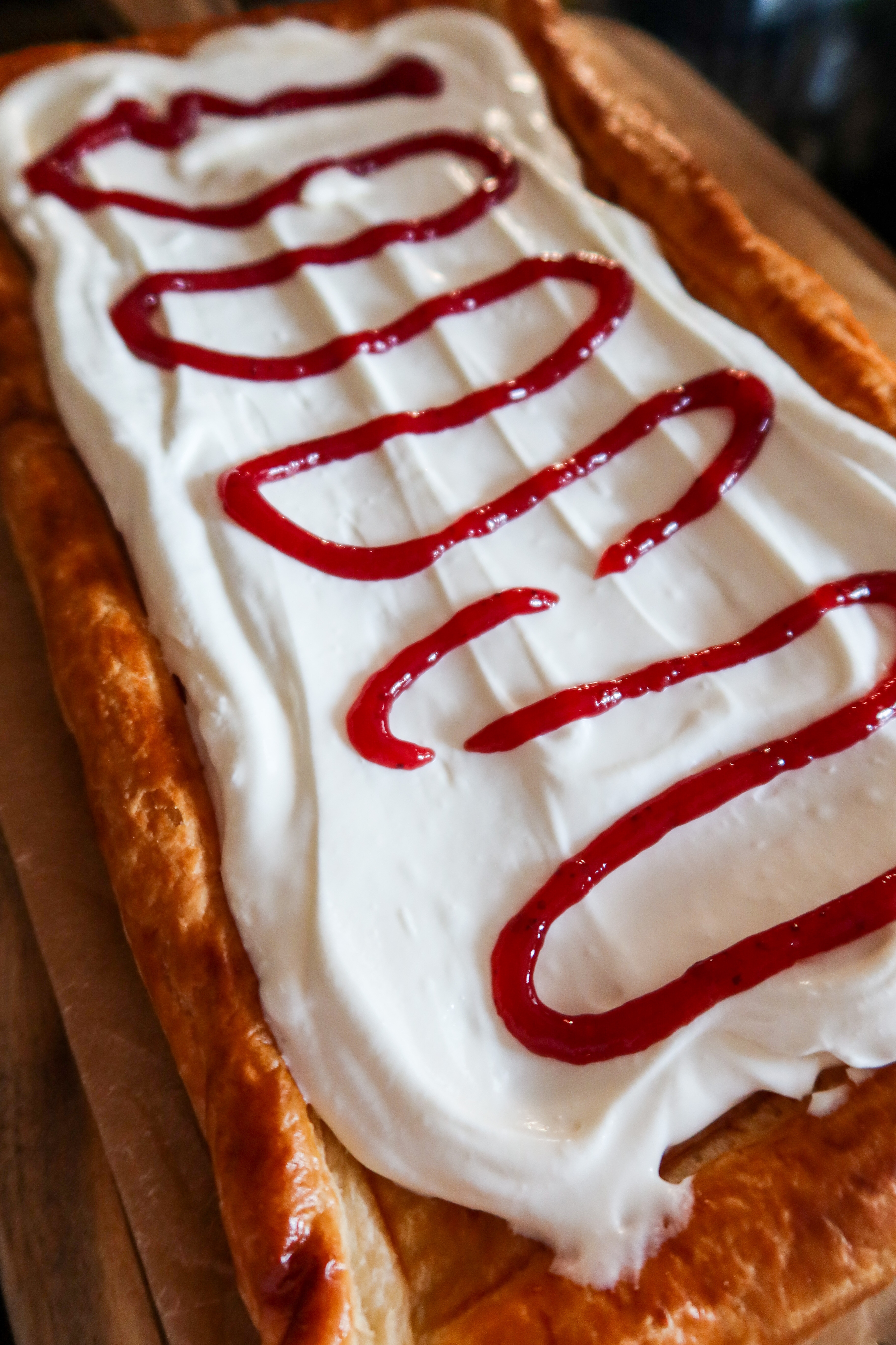 3) Ha på jordgubbssylt. Jag använde en sån squeezeflaska. Ha på efter smak, jag hade ca ett par msk.