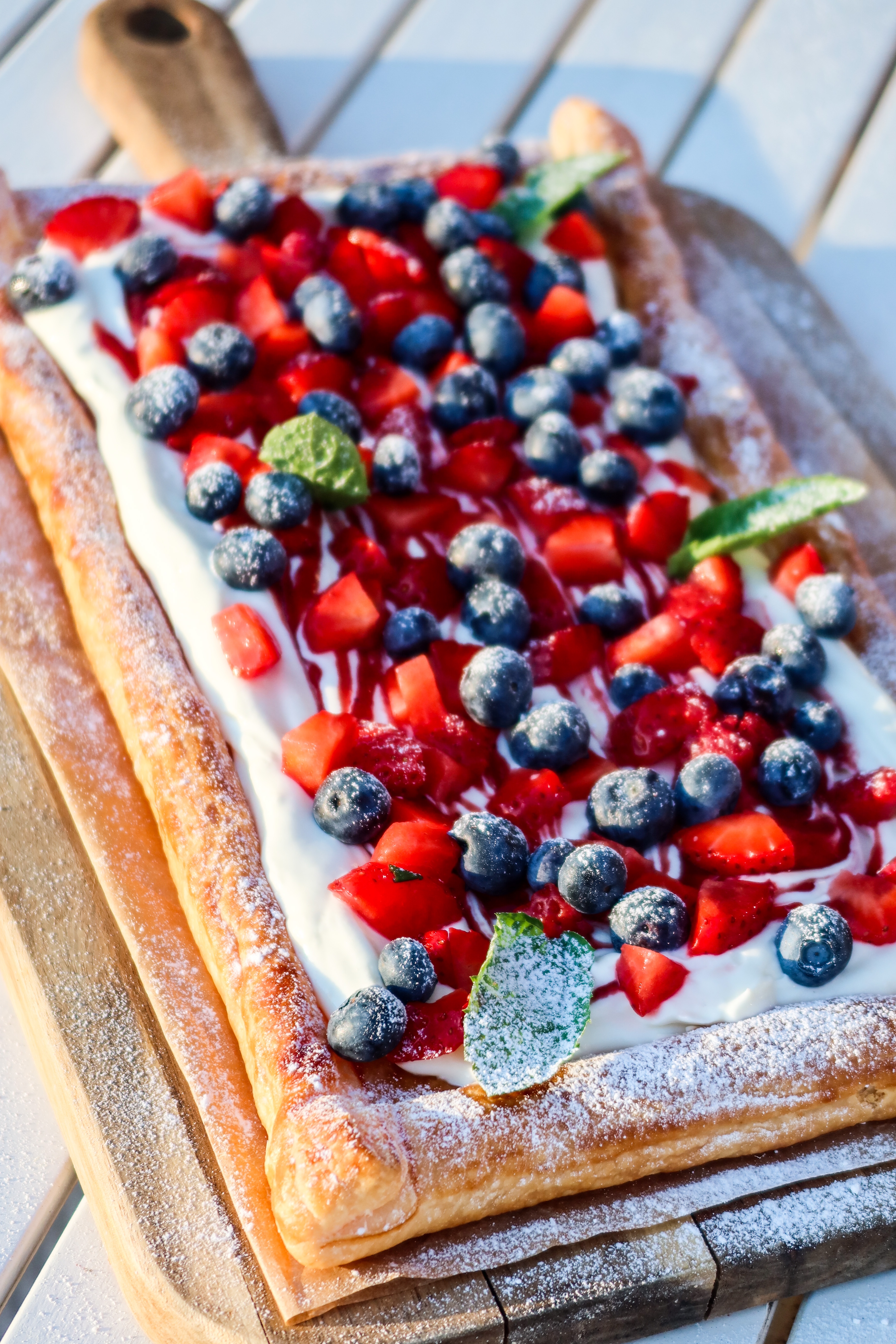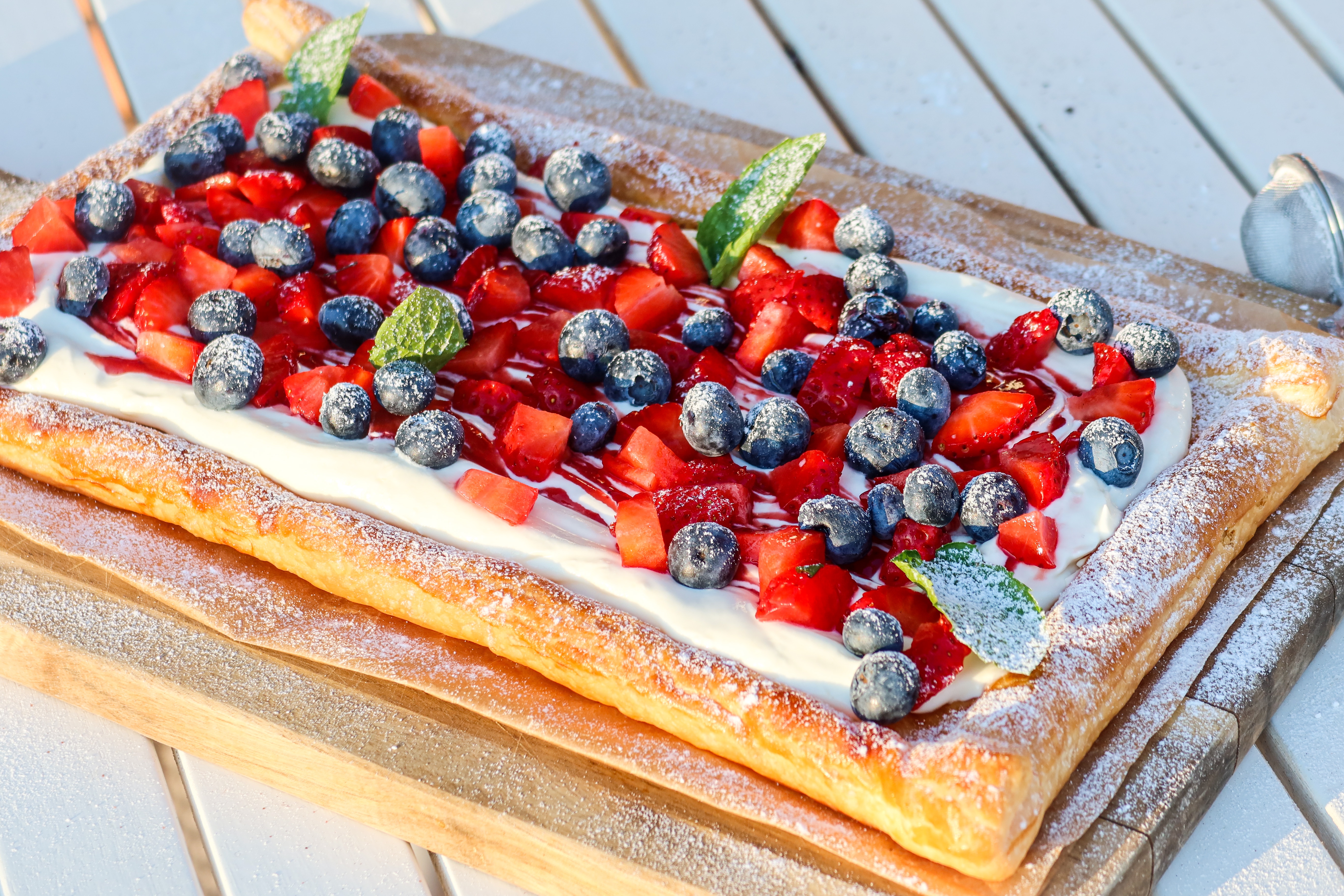 5) På med bär och avsluta sedan med att pudra över lite florsocker.
