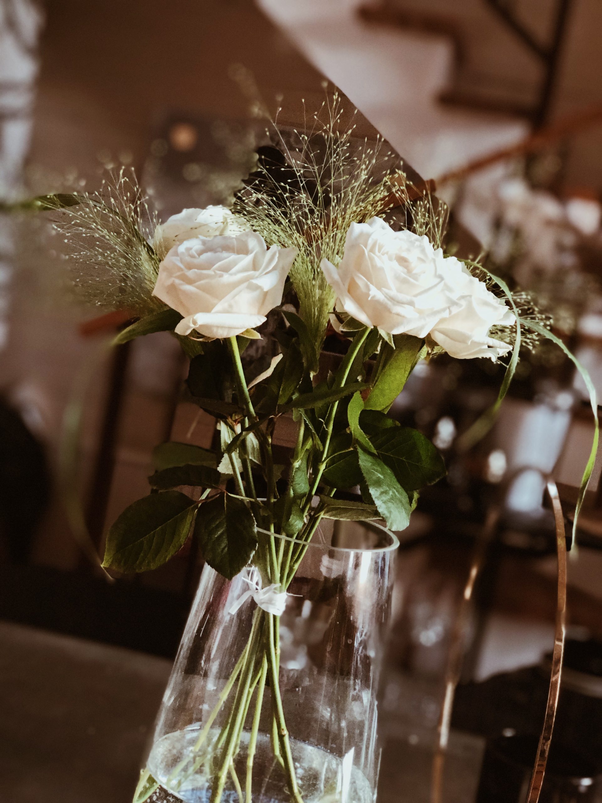 Jag fick dessutom ett gäng med urvackra vita rosor. Då får man be om ursäkt för att man brusade upp och ge mannen i huset en stor kram och kanske lite rajraj. Haha….