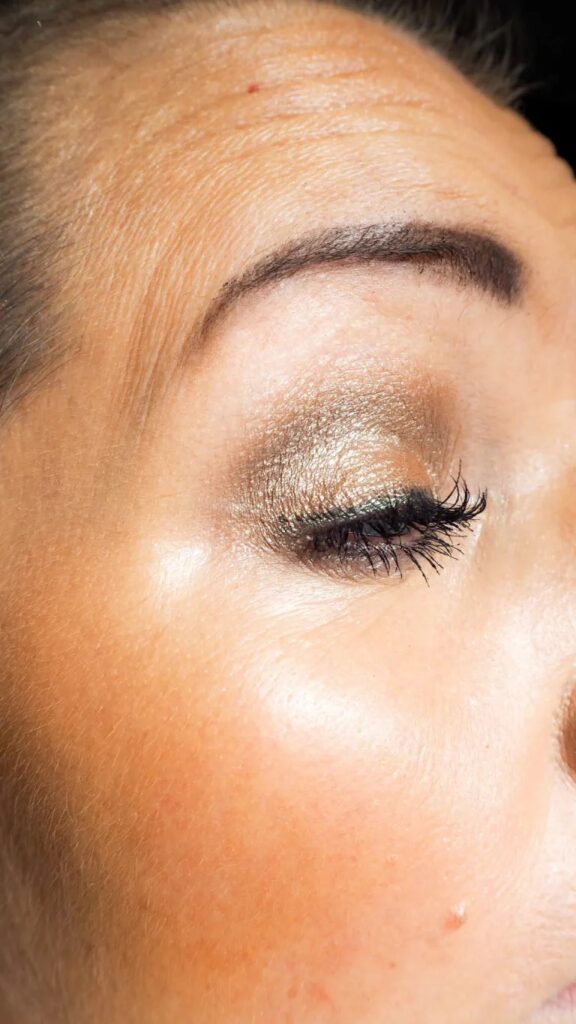 118 DETAIL CREASE – penseln som inte syns i bild. Denna använder jag till den lite ljusare skuggan jag brukar applicera i ögonvrån. Den som gör att man ser lite piggare och vaknare ut. Tips på var jag lägger den ljusare skuggan ovan på bilden.