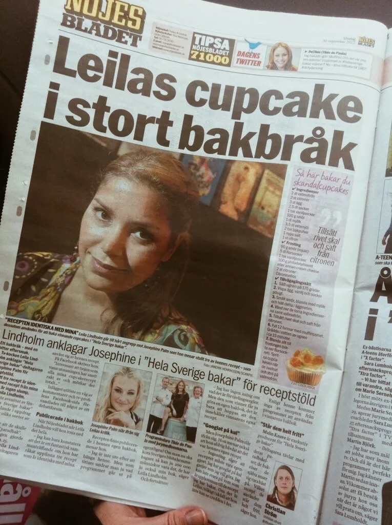 Josephine hamnade i storbråk med Leila Lindholm också. Leila anklagade Josephine för receptstöld. Tycker att Josephine skötte detta otroligt snyggt. Inte lätt att bli anklagad av den då största bakdrottningen vi hade i Sverige, och hon var inte nådig när hon hängde ut Josephine då.