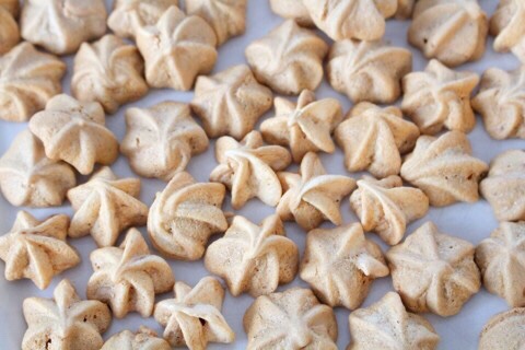 1) Lägg i alla ingredienser till mördegen i en köksmaskin, blanda runt tills du har en kakdeg. Du kan också nypa ihop den med händerna och göra en deg så. Rulla degen till 2 rullar som du placerar på bakplåtspapper på en ugnsplåt.