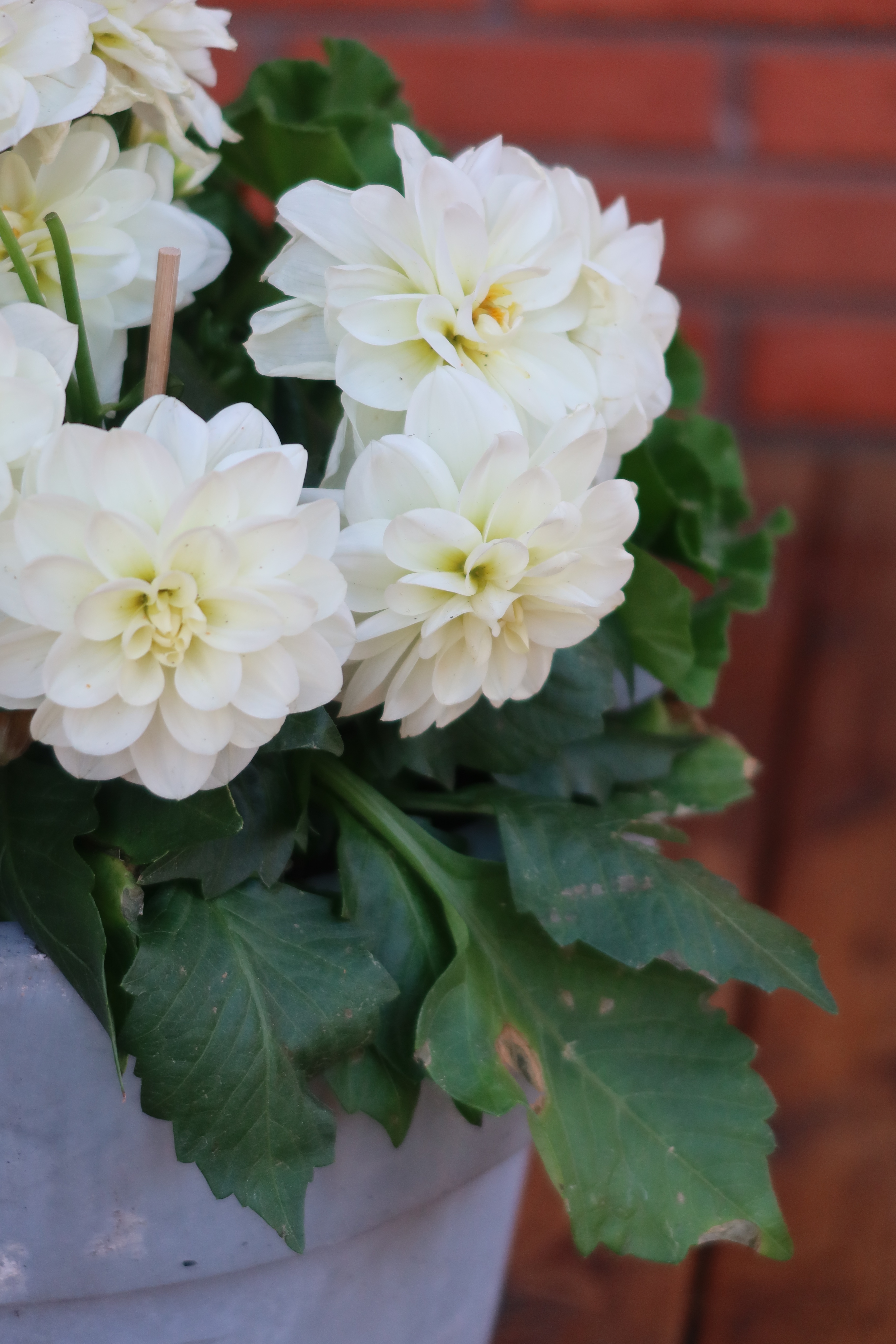 Vid dörren står det lite dahlior och pelargoner. Det känns som jag nu ska lära mig lite att ta hand om dessa sköra små liv. För mig är alla blommor sköra med tanke på att jag är usel på att ta hand om dem. Jag dränker dom eller så torkar jag ut dom. Finns liksom inget mellanting. Men nu i år kanske det händer att jag lyckas! Jag hoppas i alla fall det.