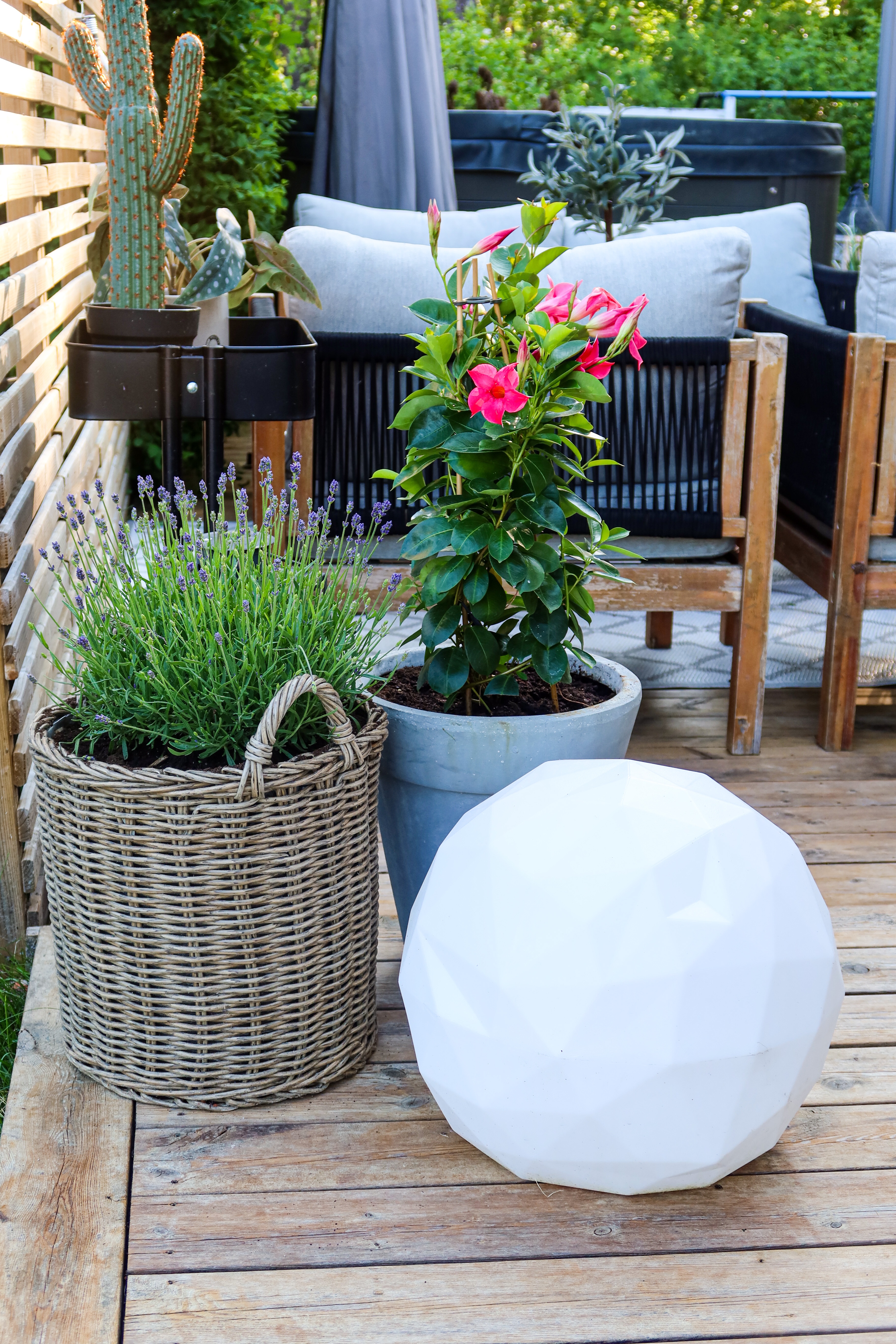 Lovade ju att visa dig våra blommor på altanen. Är alldeles kär, jag brukar ju bara köra grönt men kan säga att altanlivet ju fick en helt annan mening med färgglada blommor. Känns nästan som jag undrar vad jag hållit på med? Haha…