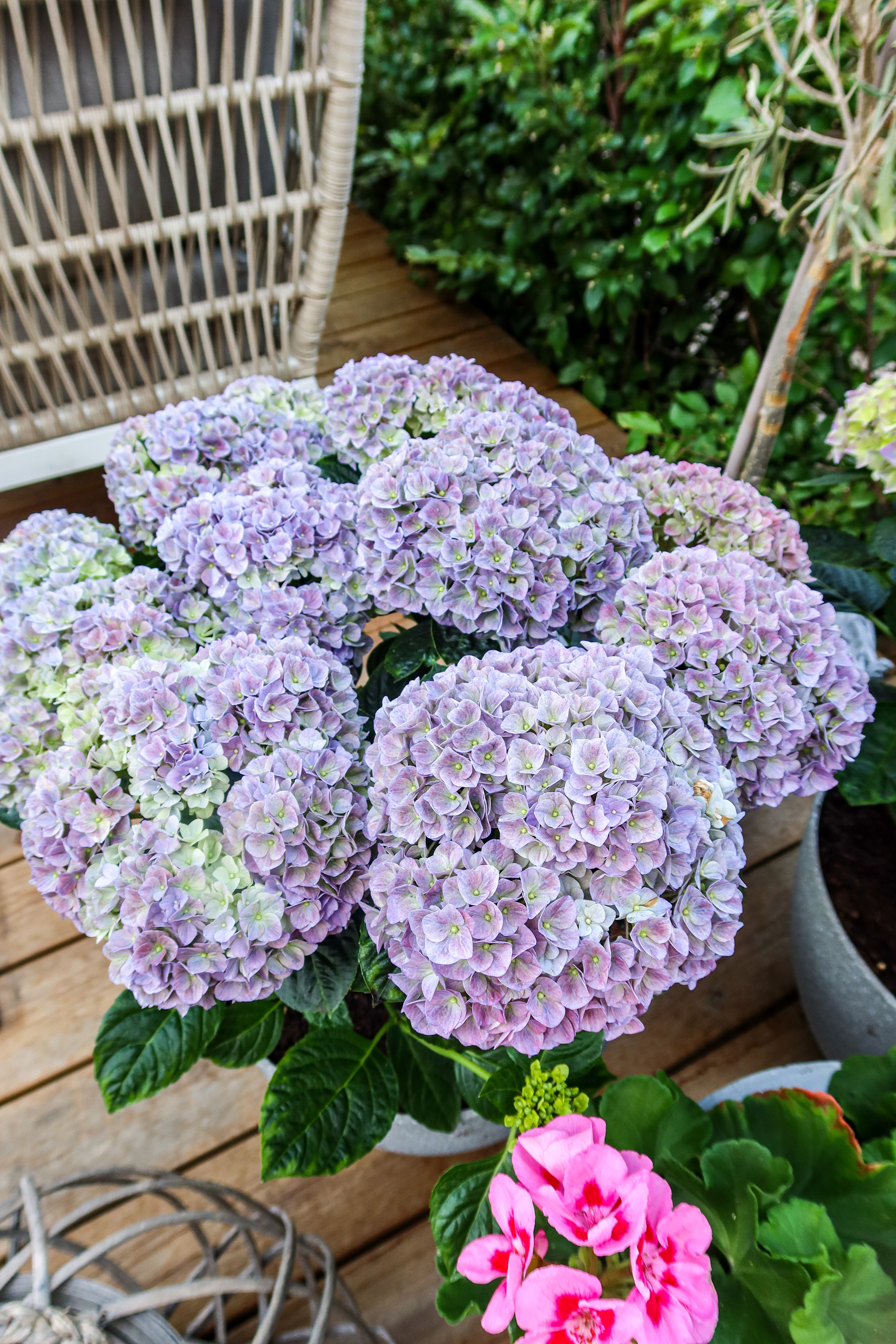Ja hörni! Hur ljuvlig färg på hortensiorna? Känns nästan magiska på nå vis. Jag ställde ju frågan på min Instagram. ”Vilka blommor är ett måste för er på uteplatsen?” Sedan utgick jag från tipsen jag fick där. Kolla så fint det blev. Jag planterade också om varendaste en. Det har jag lärt mig av min svärmor som har de grönaste fingrar jag vet. Jag som bara kommit hem med dom och satt dom i sin plastkruka i en annan kruka och tänkt, klart. 😅 Men nu gick jag all in, ny planteringsjord och ny kruka för de små liven.