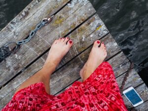 Lite avskavt nagellack på tårna, en kär gammal brygga som man klivit upp på en herrans massa gånger, ljummet vatten i sjön, sval sommarklänning på och familjen ledig länge till. T A C K S A M är ordet! ❤