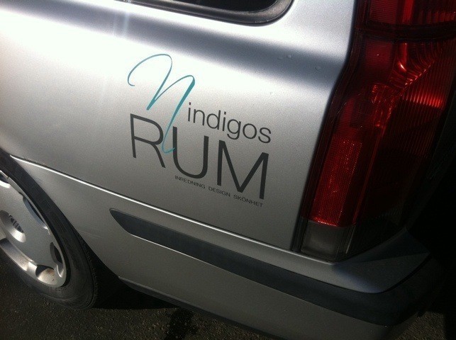 Såhär ser bilen ut med all reklam. Det är hemsideadress under båda dörrarna och sedan