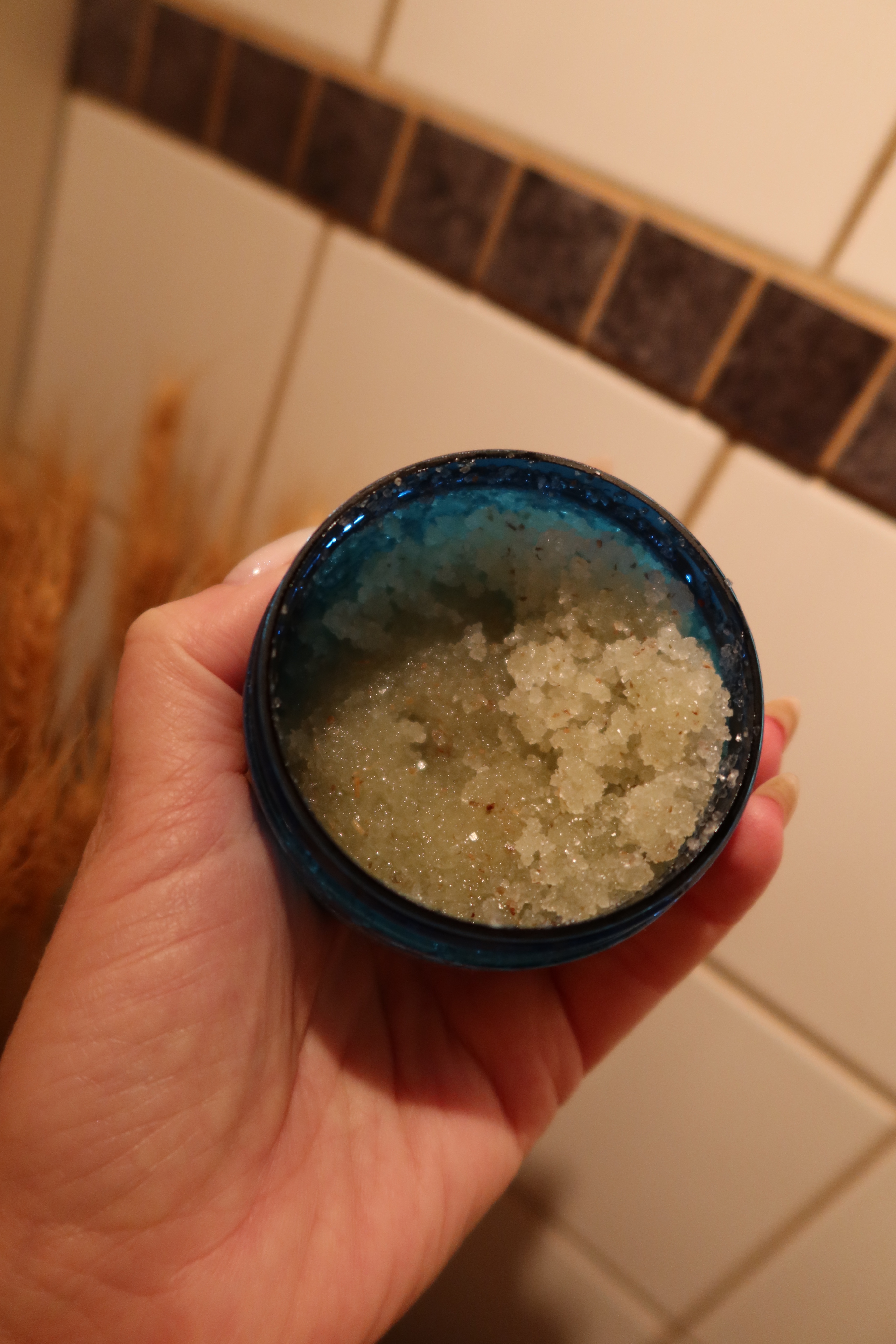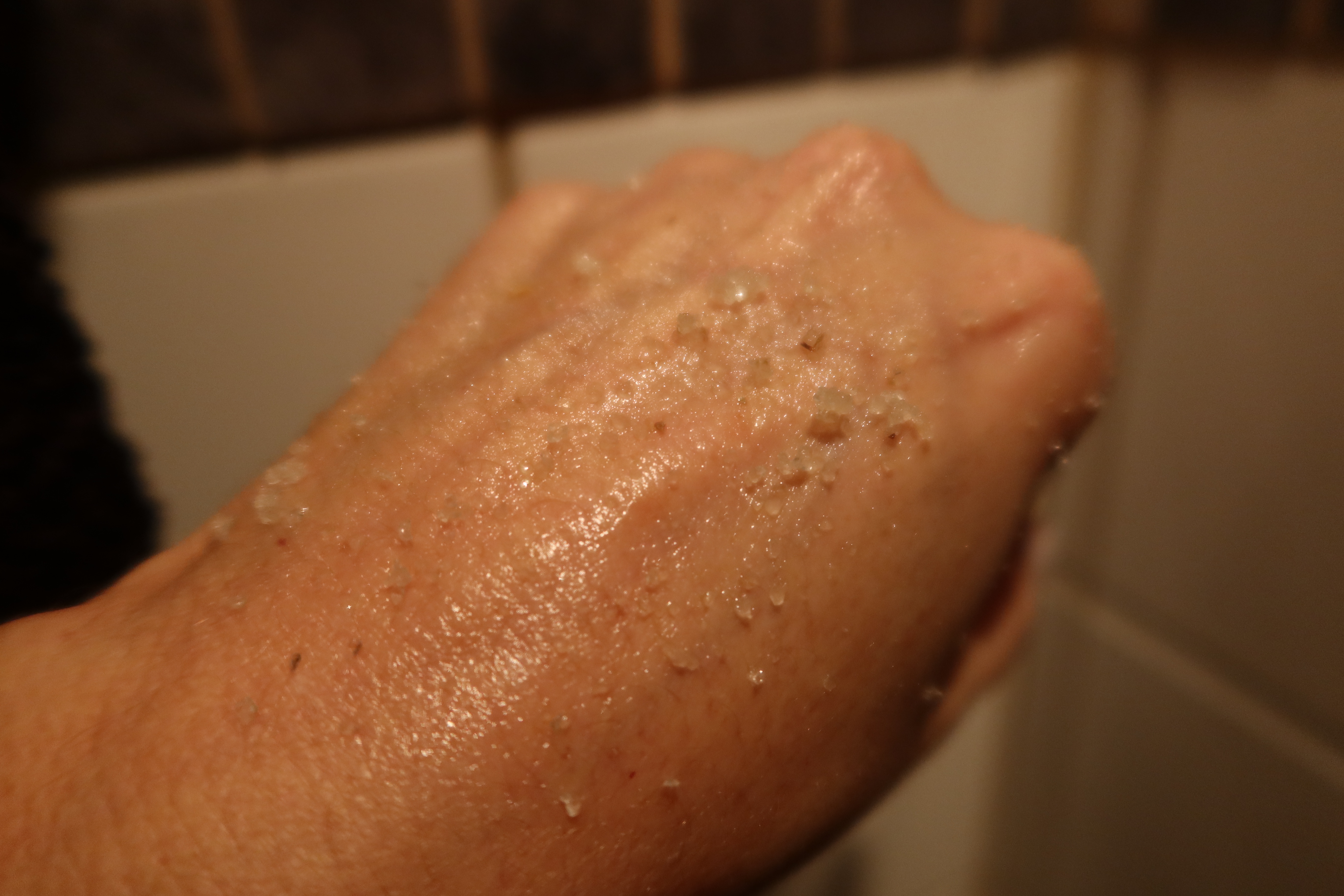 Den här scrubben är verkligen så härlig. Testa att bara ta en liten klick och köra på din hand. Den blir verkligen helt bebislen och mjuk, och doftar sååå härligt.