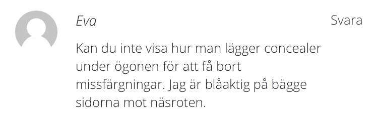 Fick en läsarfråga förut! Just det som Eva efterfrågar här är ju hur man ska täcka det blåaktiga inåt ögonvrån, alltså där näsan börjar. Alla är i stort sett blåaktiga där. Det beror på att det löper blodådror där som ibland gör att man ser svart eller blåaktig ut. Det ser ni att jag också gör på 1:a bilden nedan.