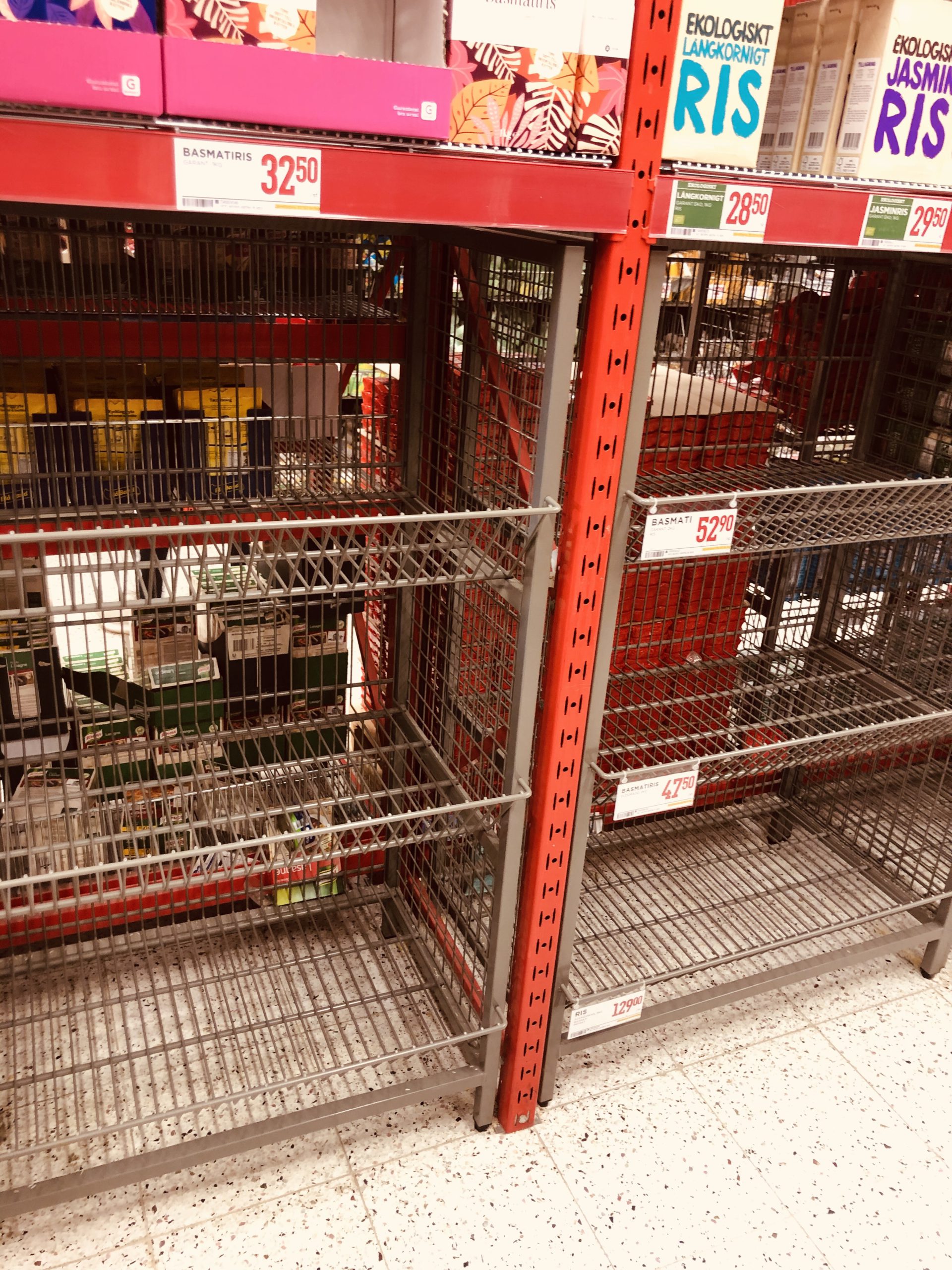 Idag var vi och handlade och hyllorna gapade tomma på flera ställen. Så jäkla obehagligt….. usch…. det här är inte roligt någonstans.