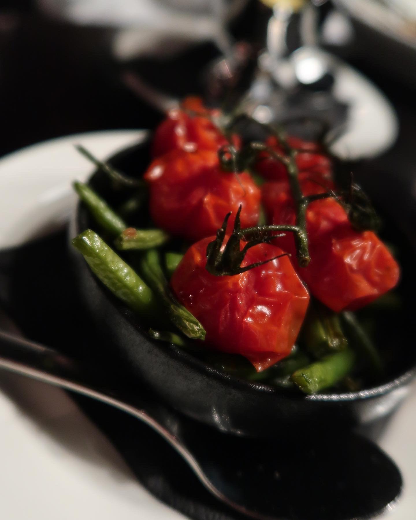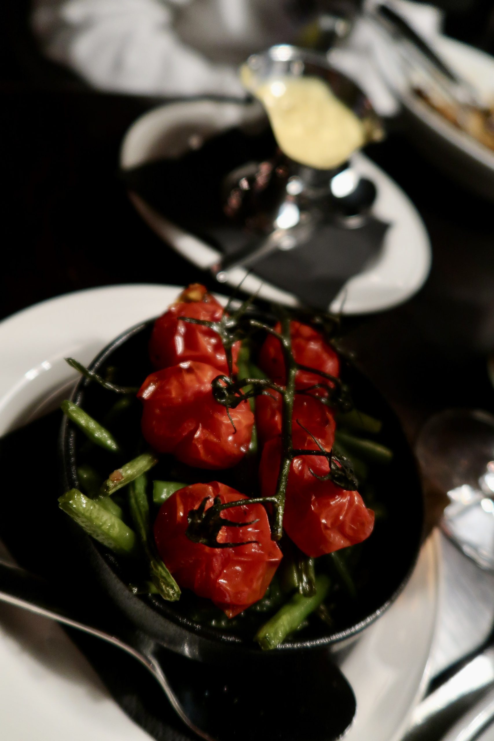 Tony tog flamberad pepparstek som de plamberar vid bordet. Jag en torskrygg med vitlöksfrösta haricot verts och ugnsbakade tomater med hollandaise. Fisken smakade brynt smör, så vansinnigt god. Det godaste jag ätit i torskrygg väg.