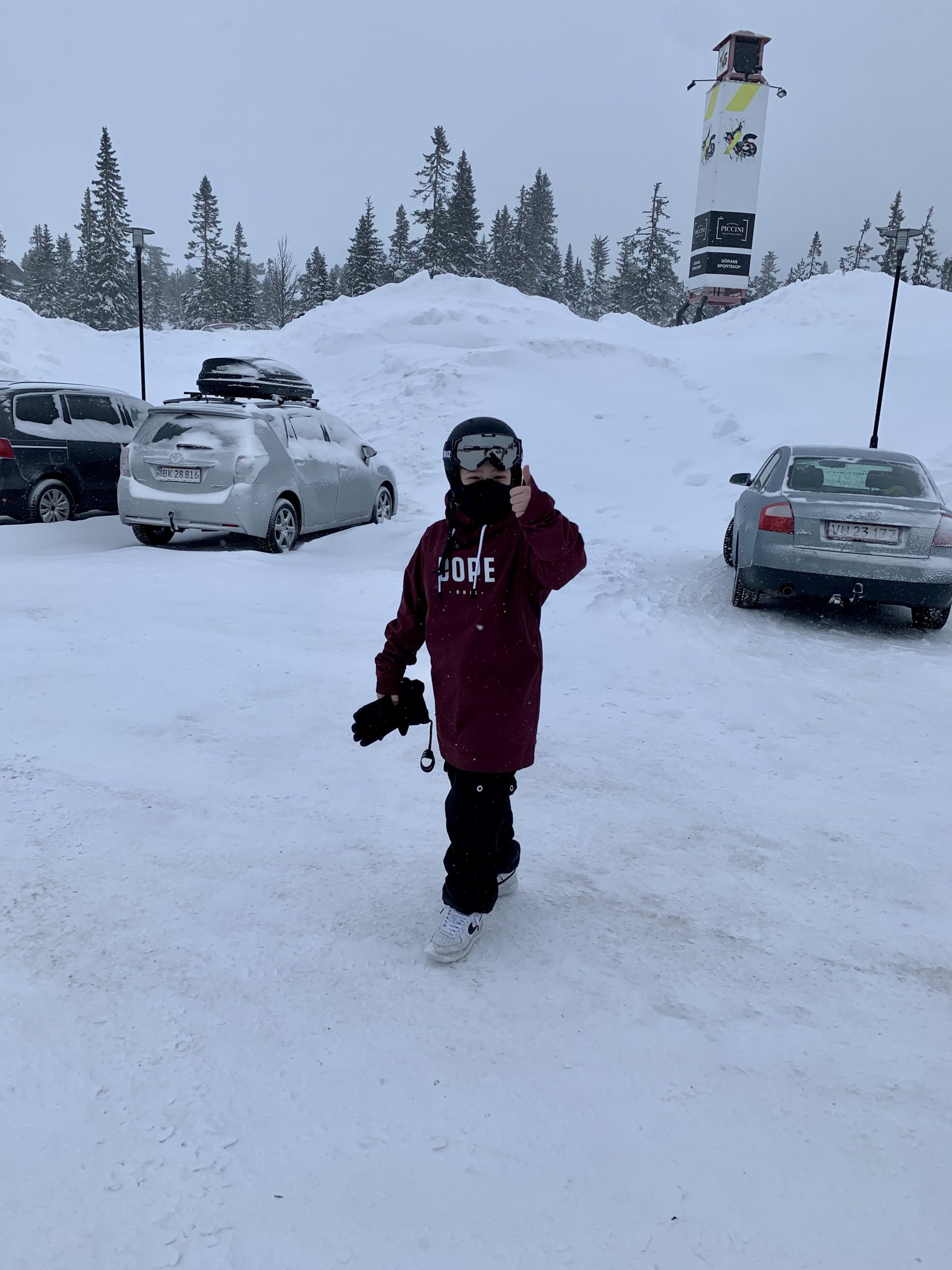 Rosig och alldeles lycklig. Han åkte snowboard igen, det är säkert 10 år sen det hände. Var så kul och se. Tony är en klippa på snowboard, riktigt stolt över min karl. Milo hade aldrig sett sin pappa åka, och han blev mäkta impad av sin farsa.
