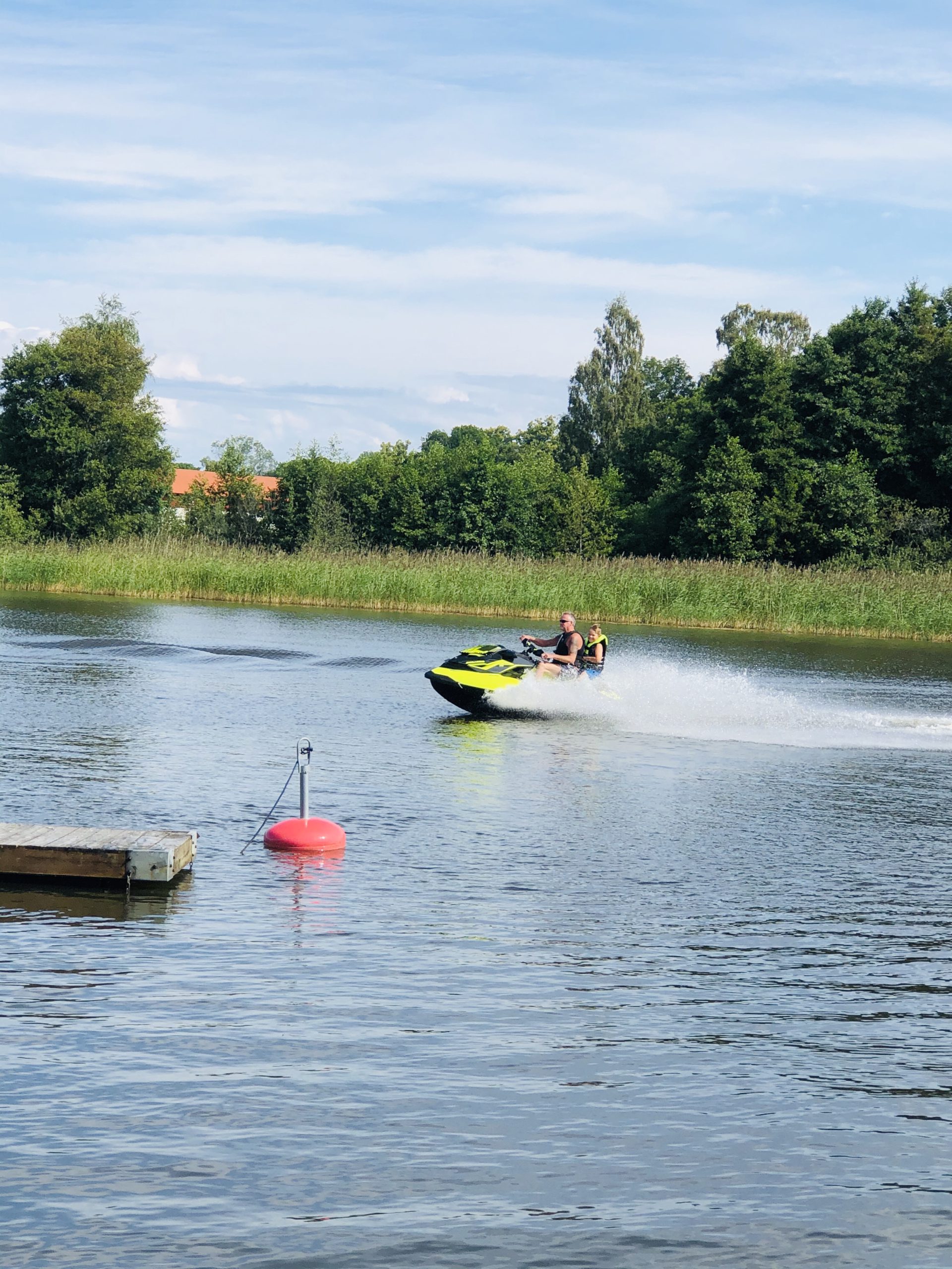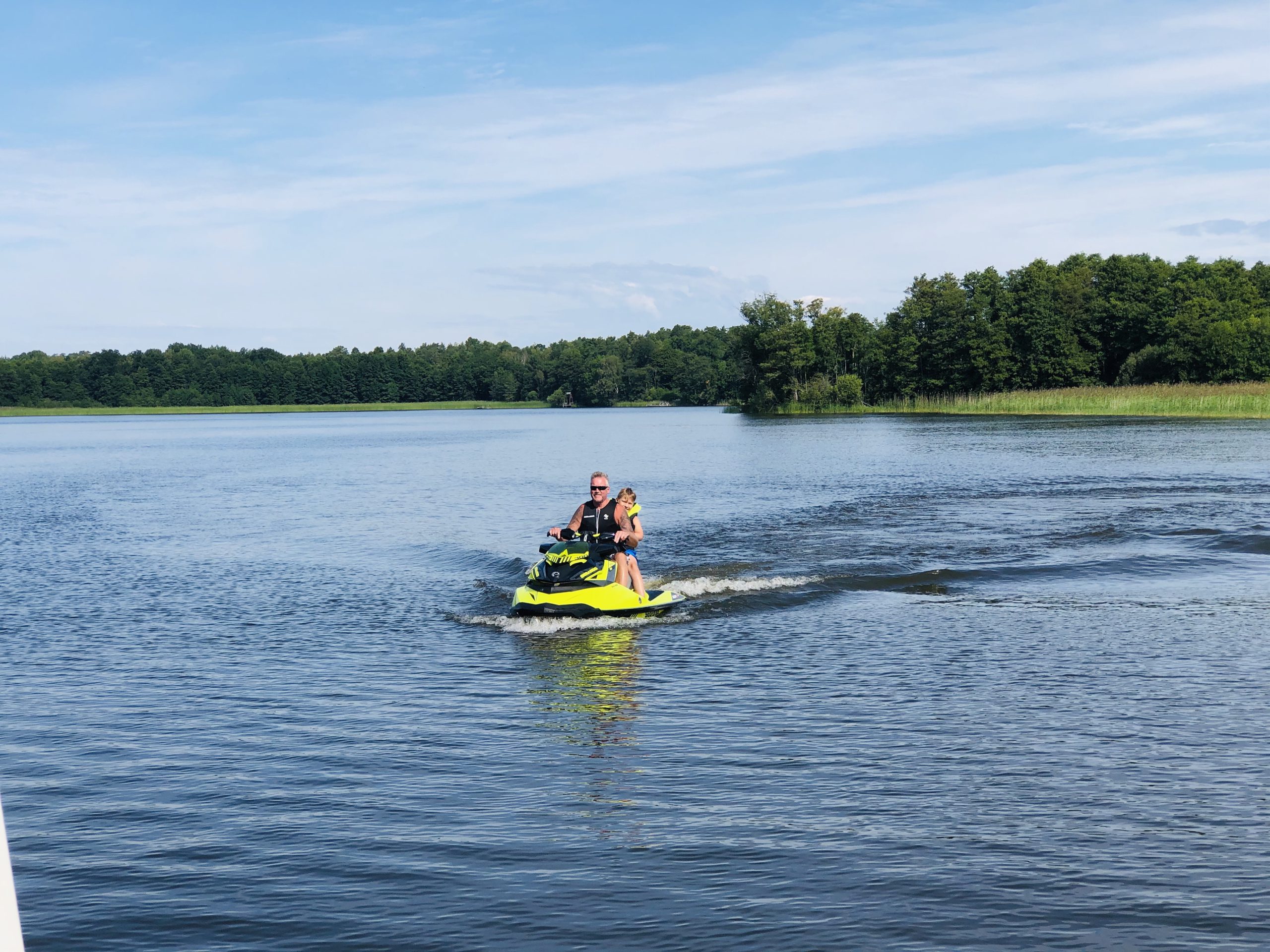 Vår förmiddag igår startade ju som sagt hos våra vänner Carola och Nisse. Ni gissar lyckan när Milo fick sitta bakpå Nisse och åka en lång stund bakpå vattenscootern?