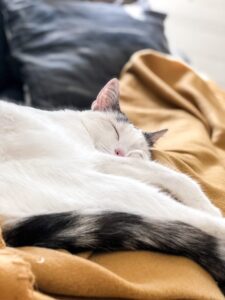 En annan som snarkar är hon här. Hon har legat på min mage sen jag kom hem. Hon släpper mig inte många minuter. Skönt med kattvärme på magen dock, men jag sitter fast. Ids inte väcka och förflytta henne när hon sover så gott.