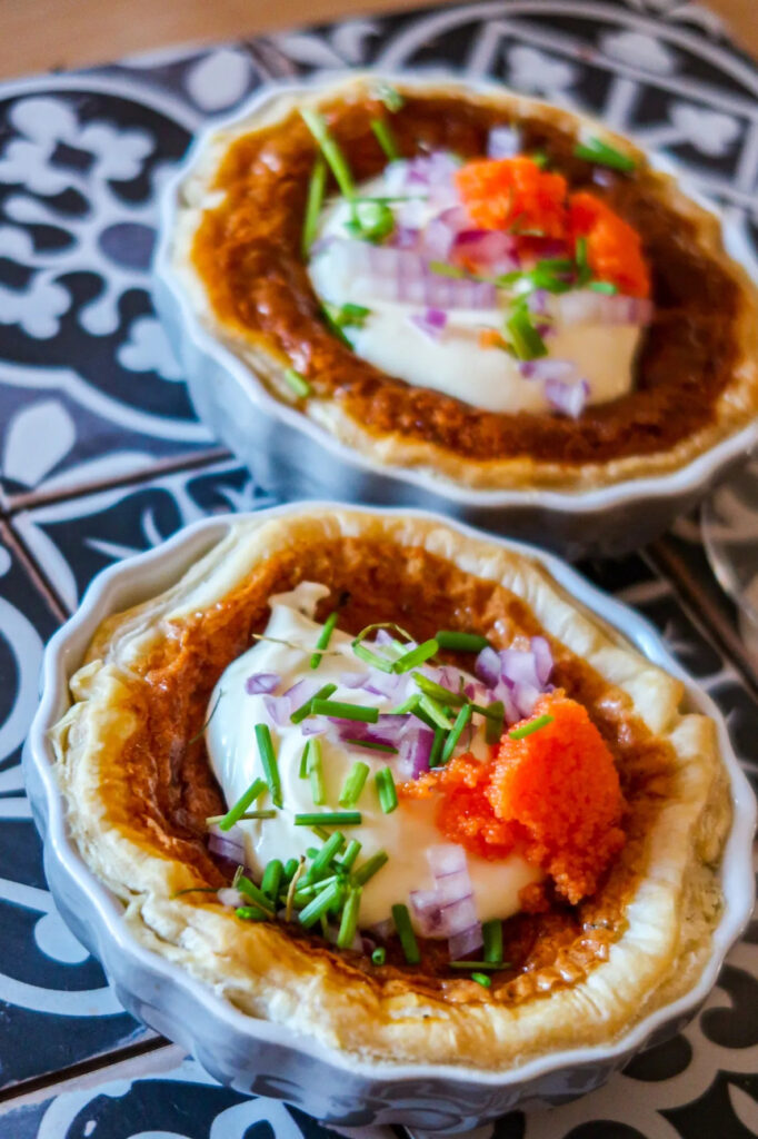 Dessa små godingar passar perfekt till det där lilla glaset på fredagkvällen, som en förrätt eller liten rätt. Kanske som ett tilltugg om det är ett tag kvar tills middagen ska serveras. Hur som haver så är det fantastiskt gott till ett glas bubbel. Snålvattnet rinner i min mun nu när jag skriver om det. Dessa pajer är verkligen supergoda.