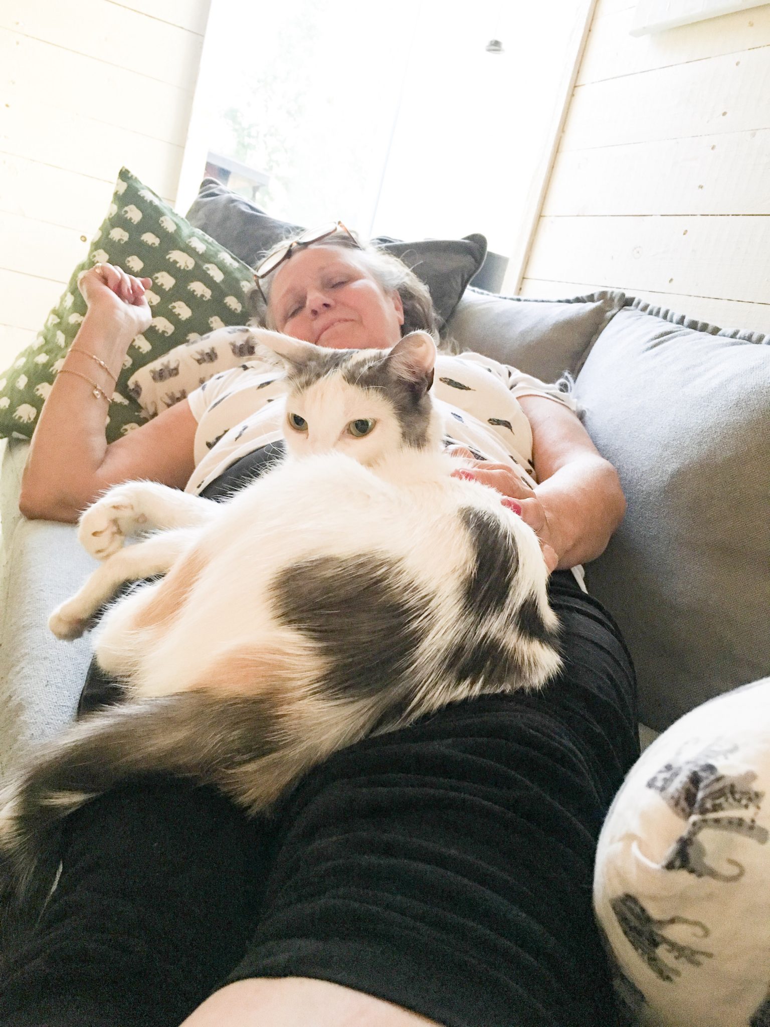 Majlis såg sin chans att få gosa på mammas mage. Så mysigt när hon ligger såhär.
