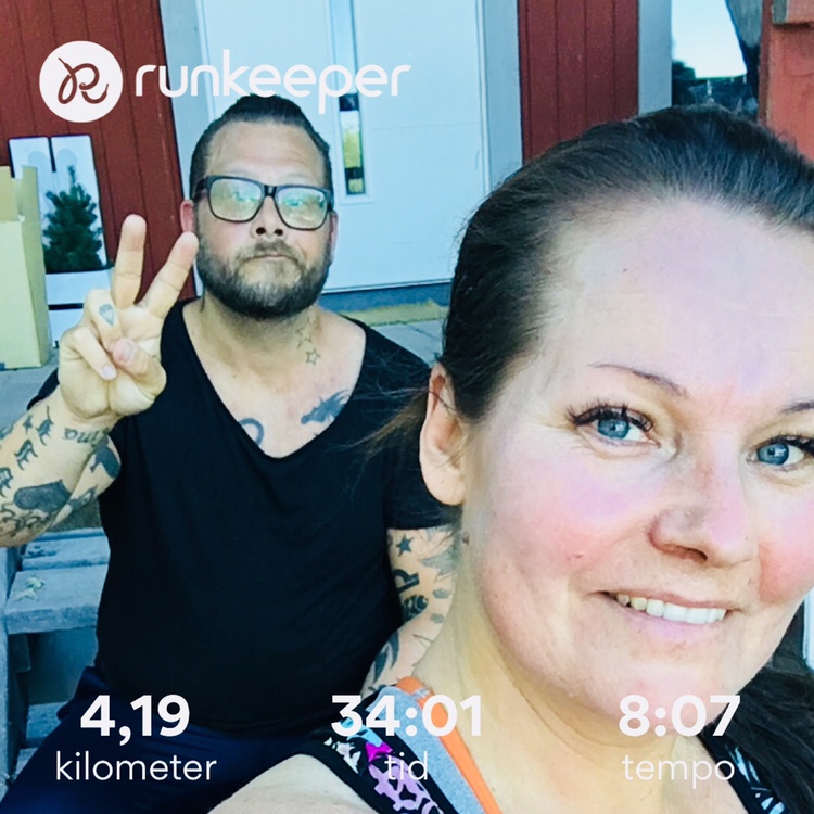 Så jäkla nöjda, svettiga och glada efteråt. Man får vara glad åt det lilla såhär i början. Skönt att ta ut sig lite faktiskt. Flåsade som ett jäkla tröskverk alltså. Haha! Fick knappt luft…. mina lungor och hela kroppen för all del, ja den måste fått chocken. Vad gör hon? Ska hon fortsätta såhär?