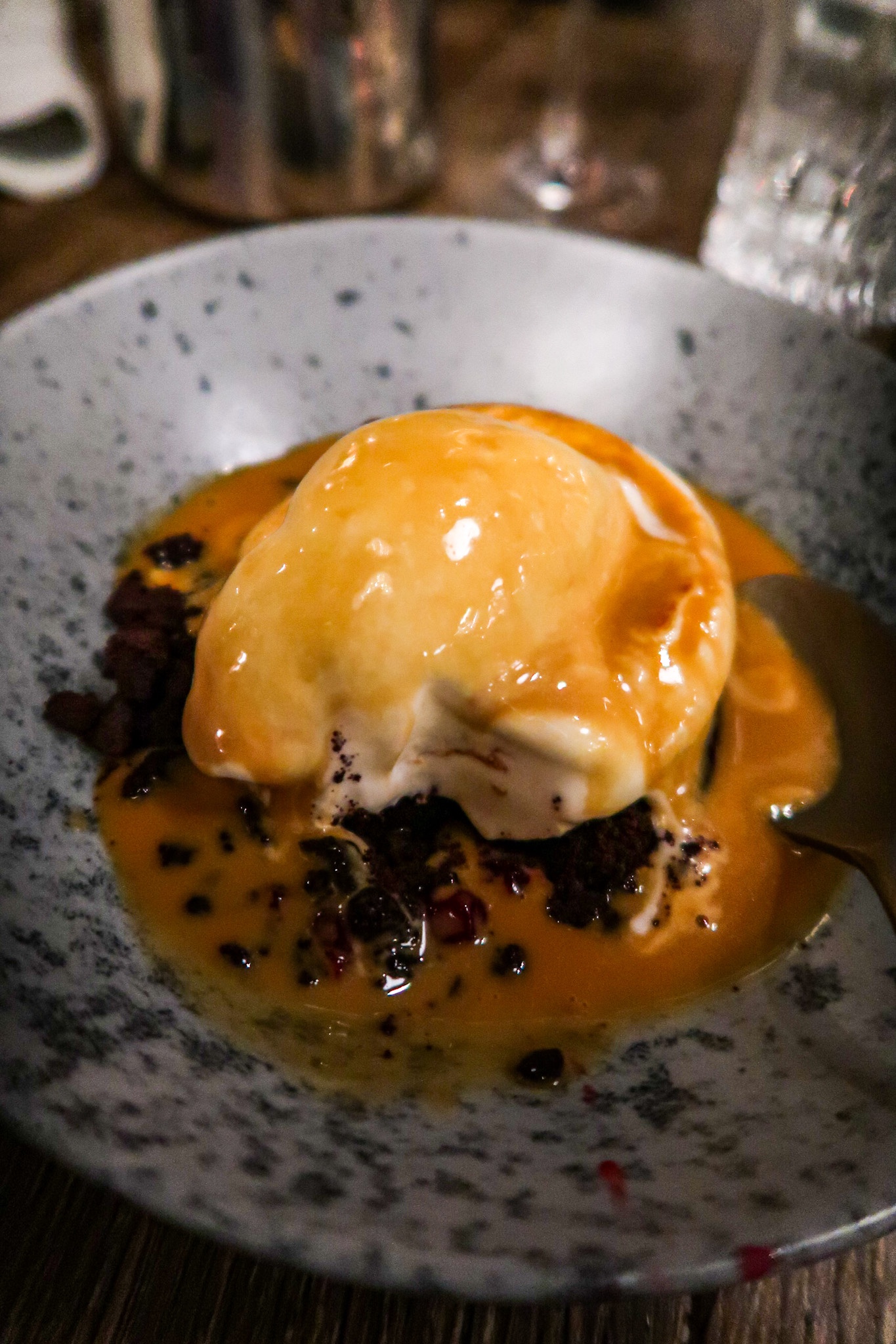 Middagen – Så dåligt med bilder från den men jag åt den förrätt jag alltid äter. Typ ”råbiff” men den är gjord på rökt rödbeta. Så sjukt gott! Till varmrätt tog vi entrecote men jag var jättebesviken på köttet, jag tyckte det var både fläskig känsla och inte alls gott. Tony däremot tyckte det var gott. Jag äter det så sällan så jag vet inte om det påverkar på något vis? Men sen kom efterrätten och den slätade över allt jag någonsin var missnöjd med, herregud så gott! Alltså, bland det godaste jag ätit i hela mitt liv typ! Jag har dessutom fått receptet av servitrisen Ellen tror jag hon hette. En underbar tjej som var kanonduktig och så serviceminded. Så nästa gång vi ska ha folk på mat så ska jag bjuda på detta.
