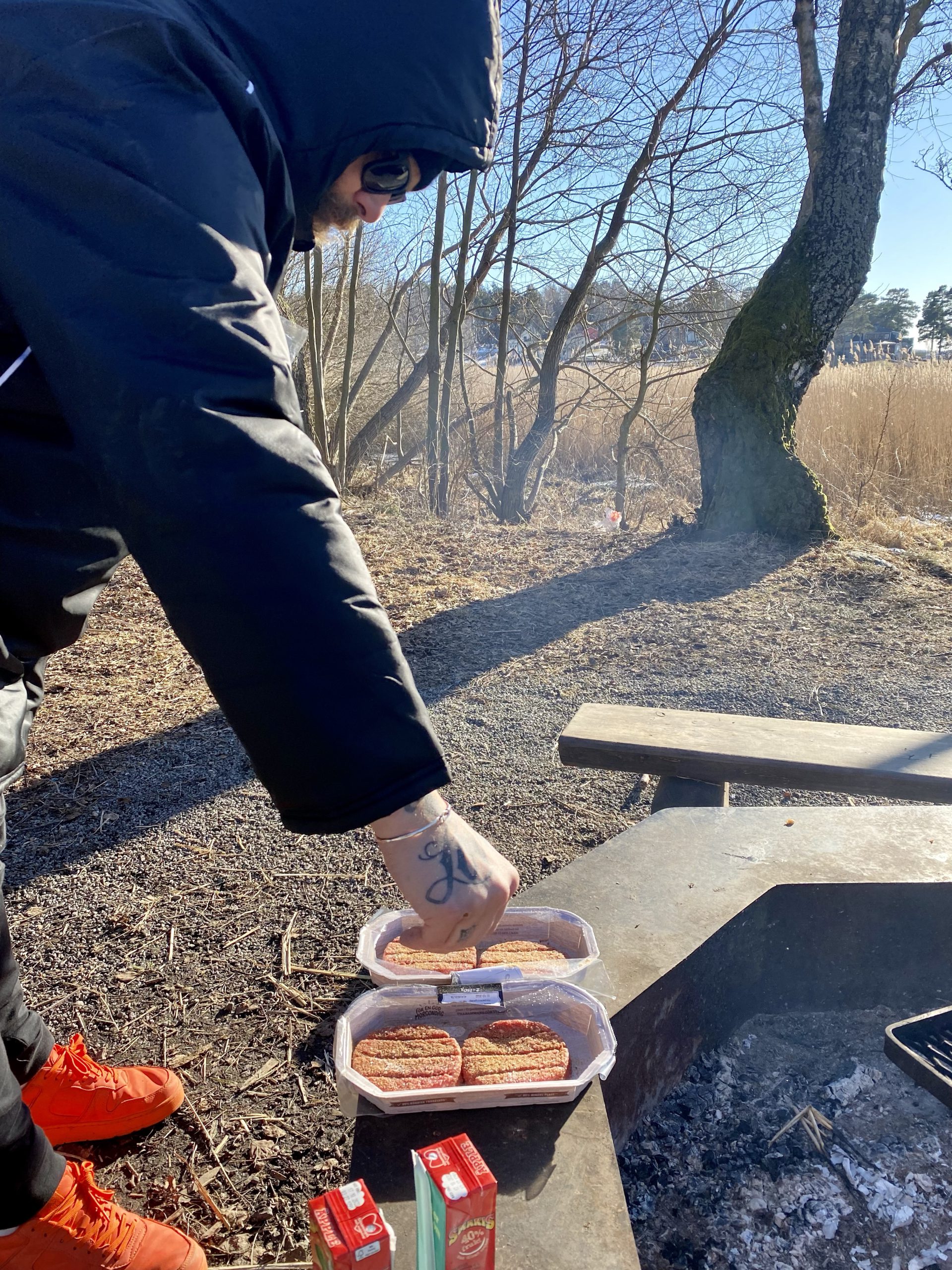 Igår packade vi i ordning och for iväg ut till Bredsand för lite grillning av hamburgare. Nu när det är så fint väder så känner man verkligen hur man behöver ut och få njuta av det. Att grilla i naturen är verkligen helt perfekt då. Vi köpte färdiga högrevsburgare och så gjorde jag i ordning en krabbelur smet som vi tog med oss. Färdiguppskurna grönsaker, hamburgerdressing, senap, ketchup och andra tillbehör.