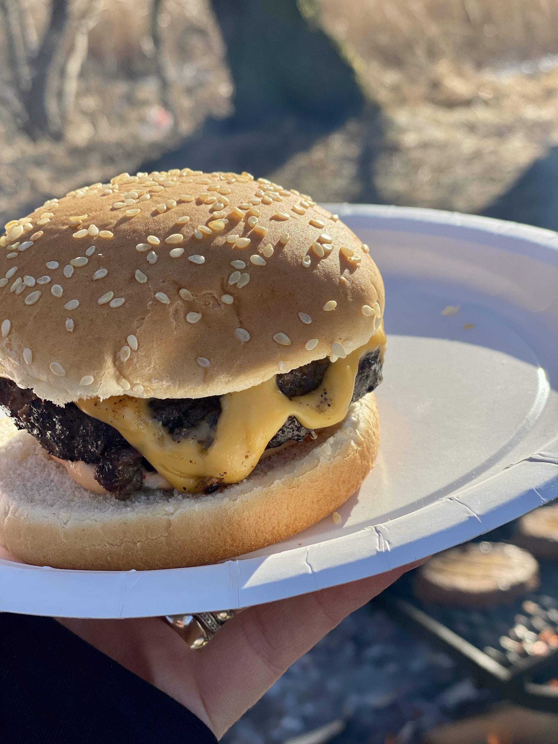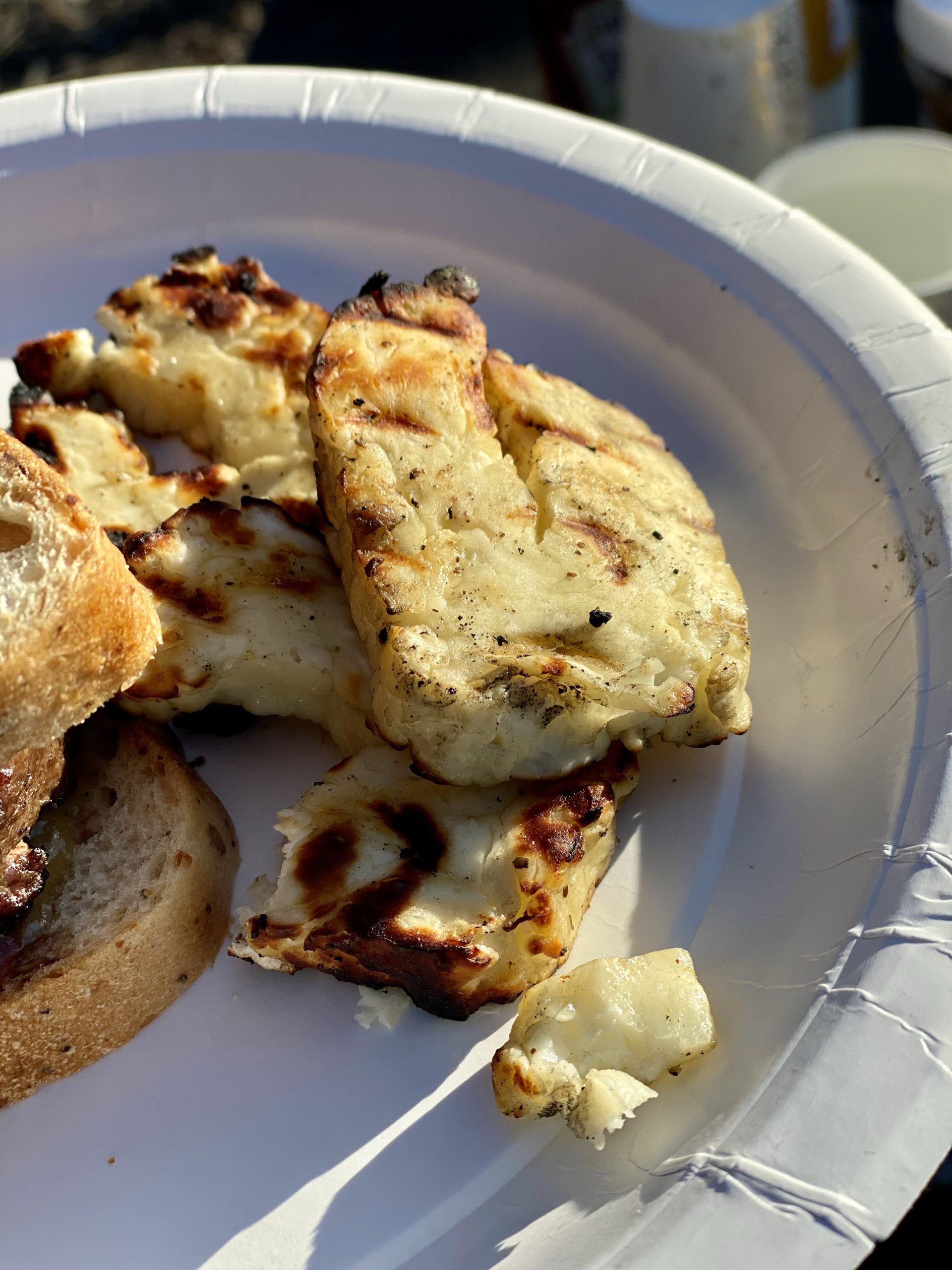 Hamburgare och grillad halloumi, så galet gott! Älskar gnisselost som jag kallar det. Gott till typ allting. Lätt att ta med och bara bränna på lite också.