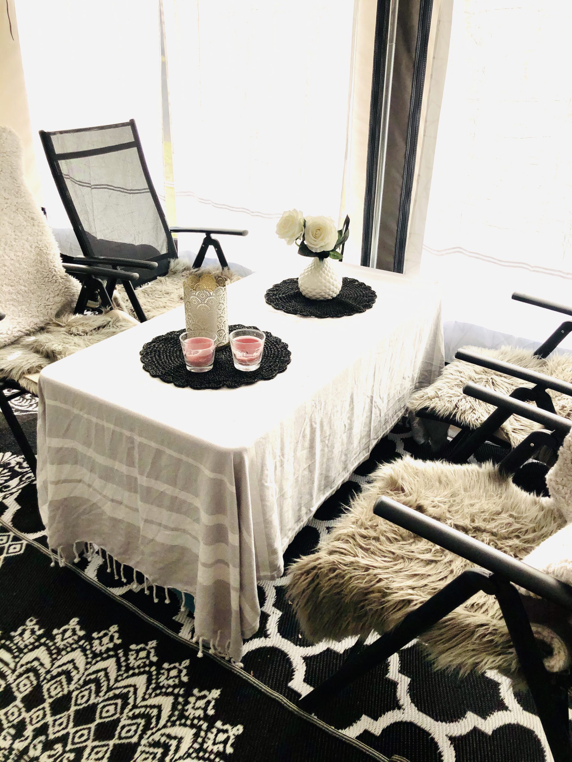 Förtältet är alldeles varmt av solen redan och jag sitter här och luftar benen lite innan jag ska klä på mig promenadkläder och ge mig av på morgonens tur. Älskar att promenera på nya ställen!