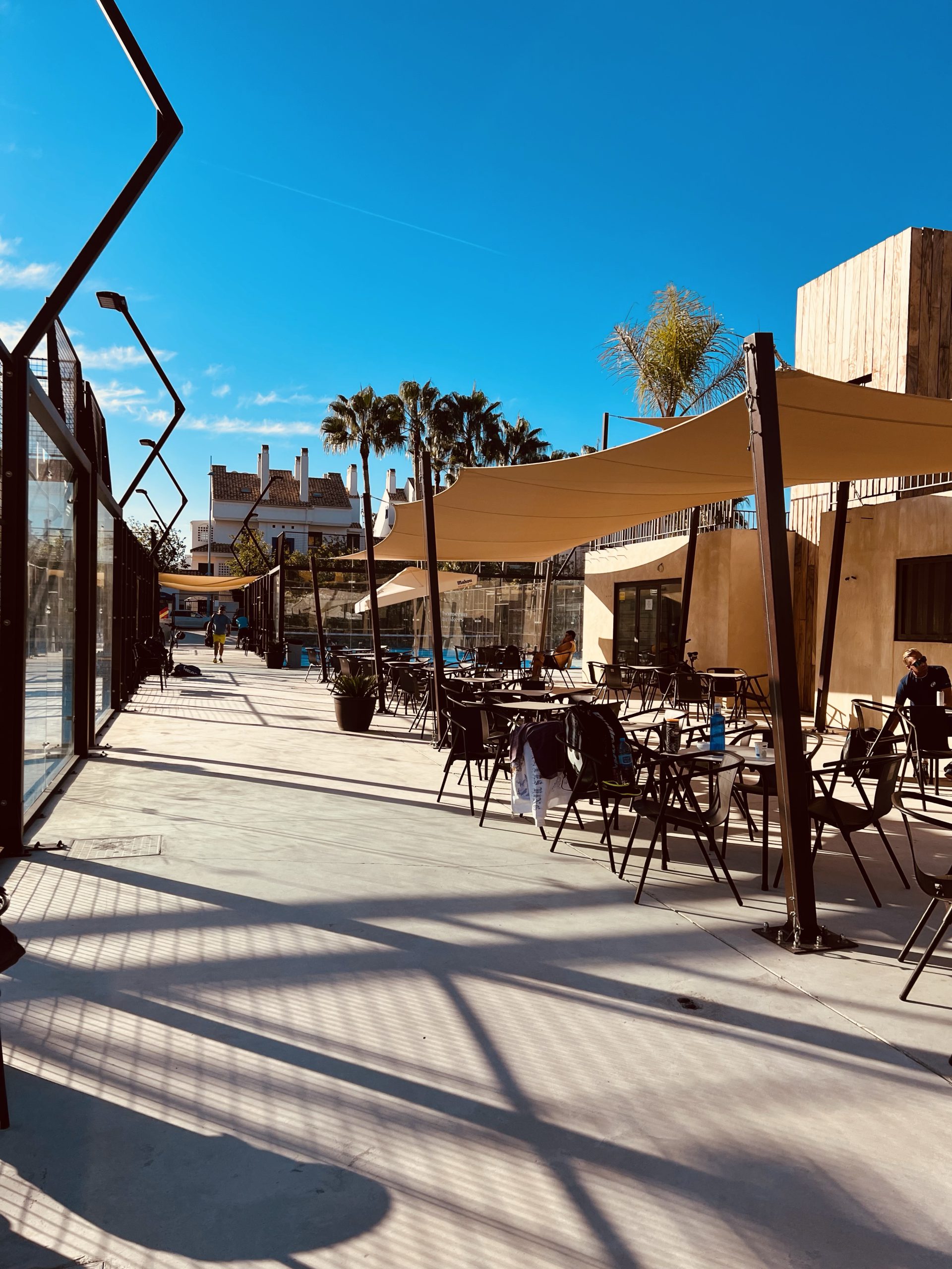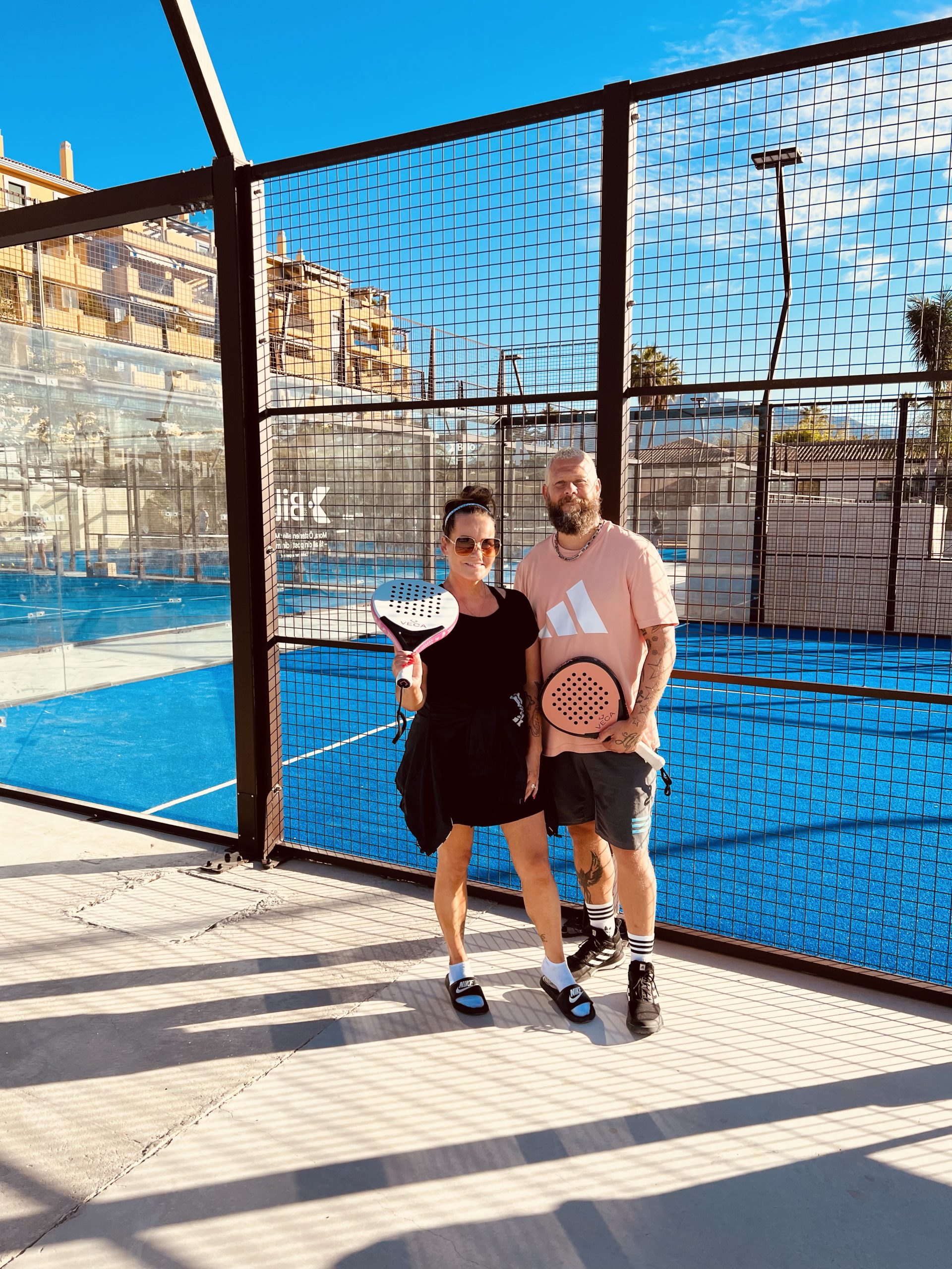 Padelbanan har bjudit på underbara morgnar, solen på väg upp på ett lugnt och stilla padelområde. Känns som jag vill stoppa tiden när jag står just här. Marbella vaknar försiktigt och solen riktigt borrar in sig för att väcka en trött själ. Jag kände mig så trött när jag kom hit men solen har gjort underverk. Den har sakta tinat upp mig känns det som. Den är så kraftfull här, jag känner den på ett så helt annorlunda sätt. Som att den håller mig vaken och pigg när jag ska vara det, på dagtid. Sen blir det kolsvart när vi ska sova, som att den talar om för mig att nu ska du sova. Dagarna flyter inte in i varandra som en mulen grå dag i Sverige kan flyta in i natt. Man märker liksom ingen särskild skillnad. Här är dag och natt sån markant skillnad.