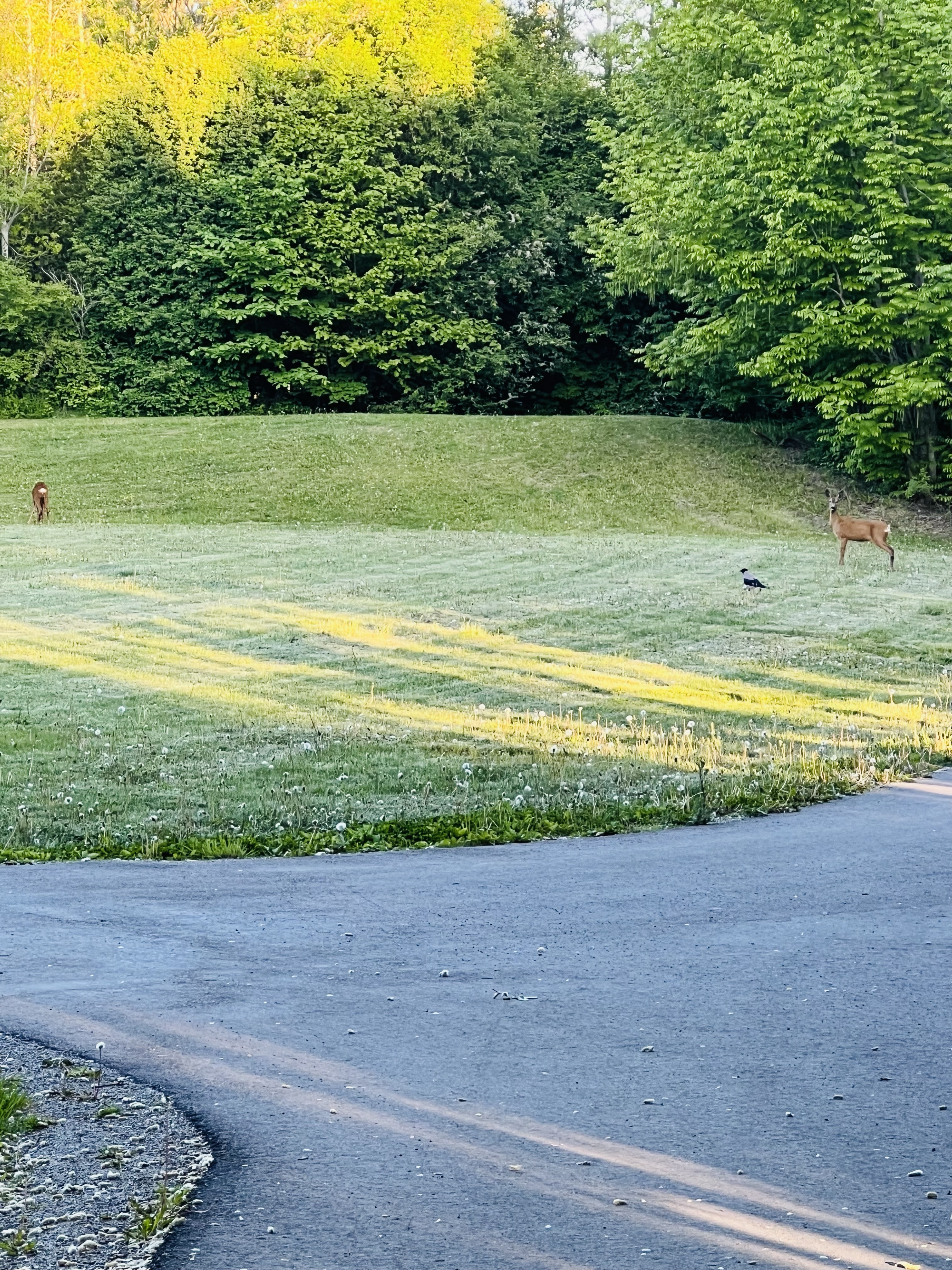 Morgnarna är magiska nu. Solen har gått upp och sipprar in mellan träden, det har dock varit rejält kallt med bara 5-6 grader på morgonen. Nu får det bli lite värme känner jag! Så tidigt som jag går så är det typ bara djuren och jag vakna. Det är så tyst och lugnt och du möter ingen. Jo, sprang på 2 rådjur här en morgon.