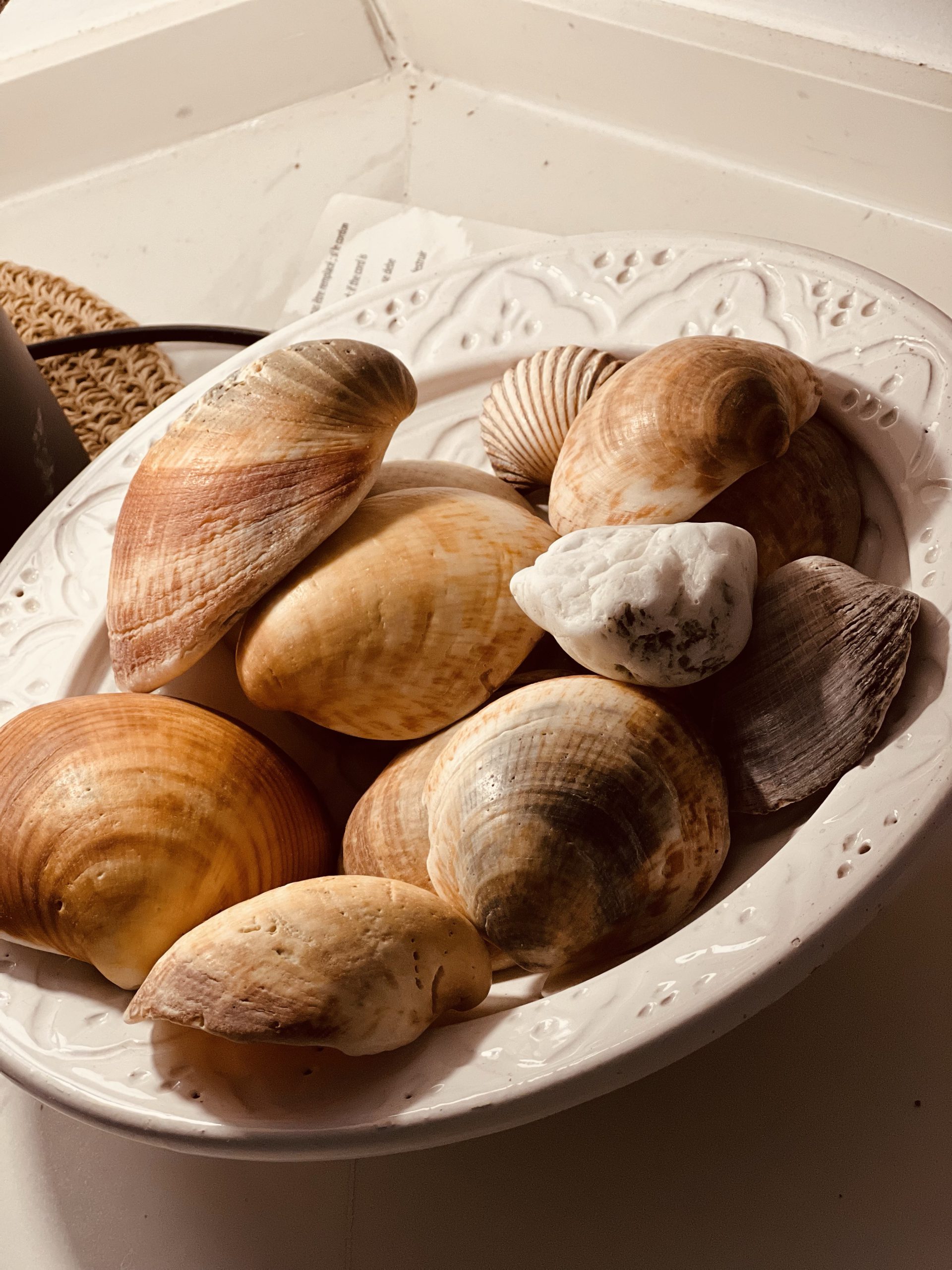 Kolla så många fina stora snäckor vi hittade! Hittade också välsvarvade bitar av snäckor som jag nu ska tillverka lite smycken av. Jag vill ha coola örhängen, Tony vill ha ett armband och jag så vill vi ha halsband allihopa. Spännande liten hobby. ☺️