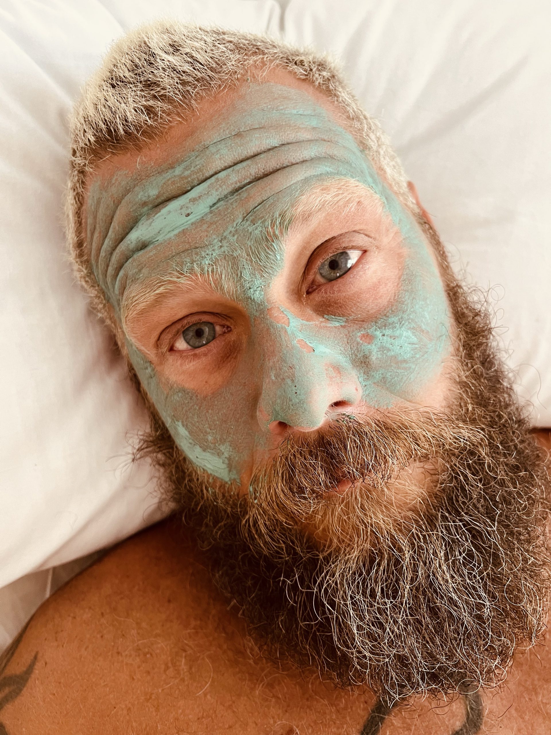 Jag beställde hela kitet. Då ingår ansiktshanddukar (du vet väl att du ska använda ansiktshanddukar för att hålla plitor och finnar borta), en mudmask pensel (tips: använd som foundationpensel), hårband och mudmask. Alltså denna är såååå bra! Så bra så jag smetade på Tonys ansikte här i morse. Den här masken rengör på djupet, den tar bort oljighet och så minskar den porerna. Ansiktet blir verkligen lent som en babystjärt alltså, helt otrolig känsla. Det är lite syra i den så den jobbar verkligen ordentligt med ansiktet. Känslan efteråt är verkligen amazing!