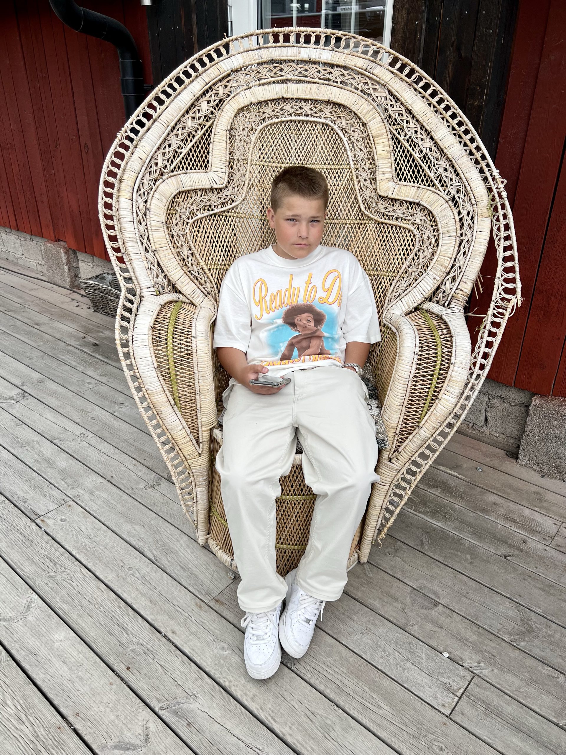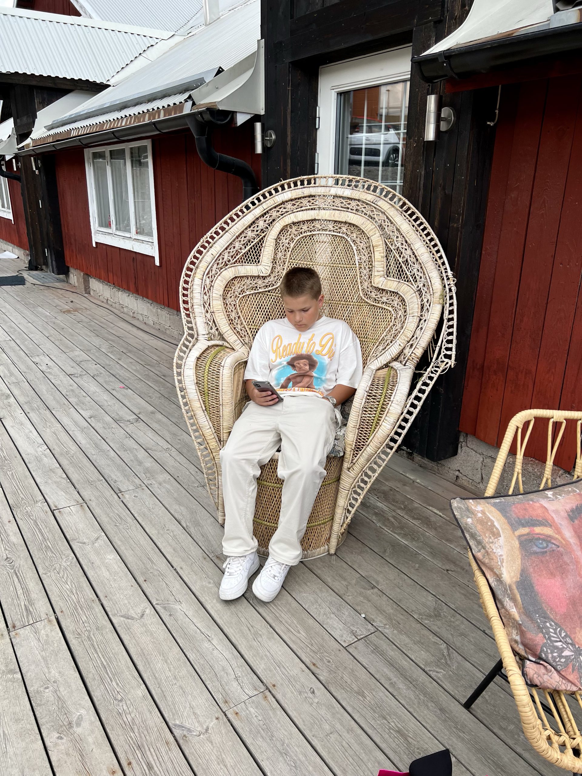 Först måste jag bara visa dessa superfina bilder på Milo. Tagna utanför Plain Vanilla när han satt i den här alldeles magiska rottingstolen.