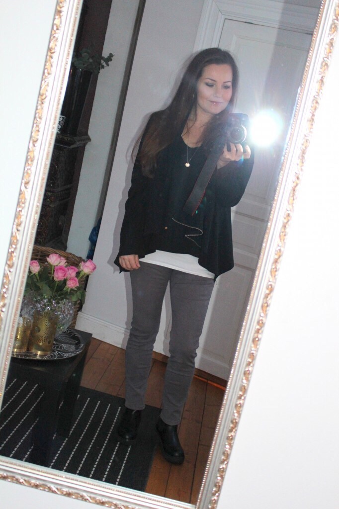 Är jag hemma och jobbar så blir det ju bara myskläder. Lite trist då man faktiskt känner sig lite slapp och inte kan njuta av att ta på myskläder när kvällen börjar. Men är det möten eller annat jobbrelaterat jag ska på blir det ofta ett par tajta byxor och en blus/kavaj/tröja.