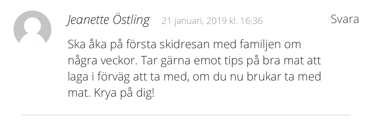 Hoppas du fått lite inspiration och tips på mat att ta med till fjällen! Ni kommer få det så himla mysigt, jag bara älskar våra fjällenresor. Bland det härligaste som finns.