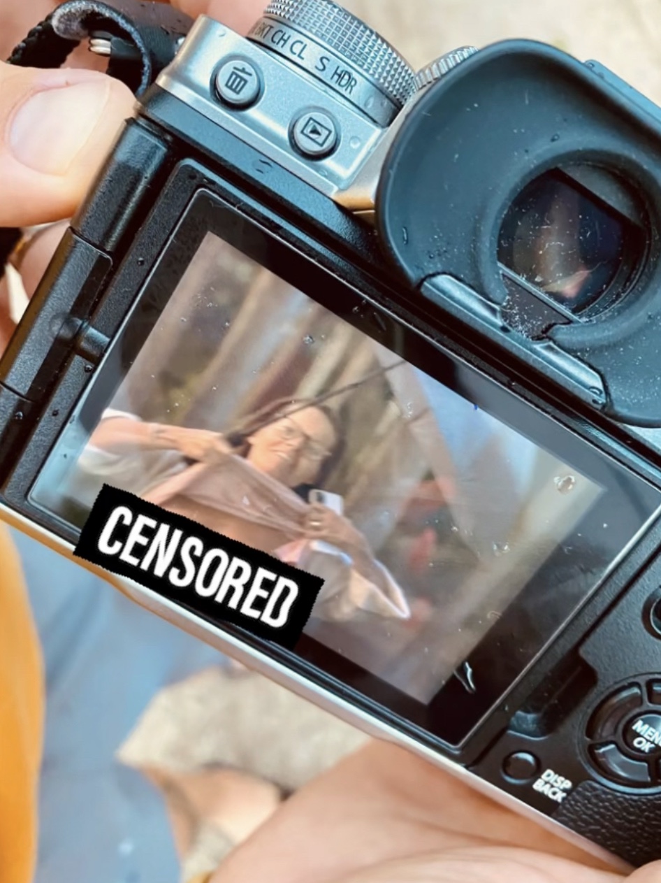 När vi skulle gå hem skulle jag vara lite rolig, ja bara för att jag inte hade någon bh på mig, så jag drog upp nattlinnet och flashade boobsen för Tony. Det var bara det att han hann och fota det, gud som vi skrattade! 😂