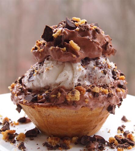 Såna här våffelbägare kan man fylla med vad som! Allt från fet turkisk yoghurt med frukter och bär till cheesecakefyllning och glass. Men det är inte bara söta grejer som passar, matigt passar lika bra ju. Fyll med någon härlig créme fraicheröra, skinka och melon, bacon och ägg, tacos eller varför inte en härlig ruccolaröra med bitar av grillad kyckling. Mums säger jag bara!