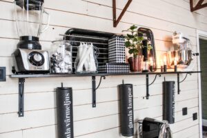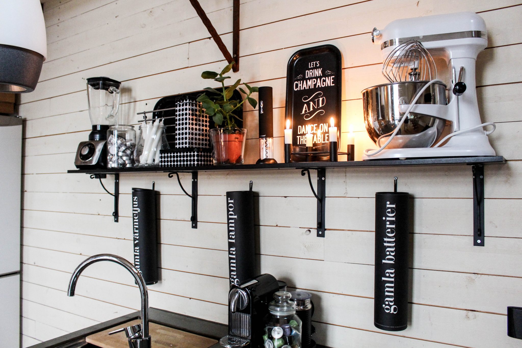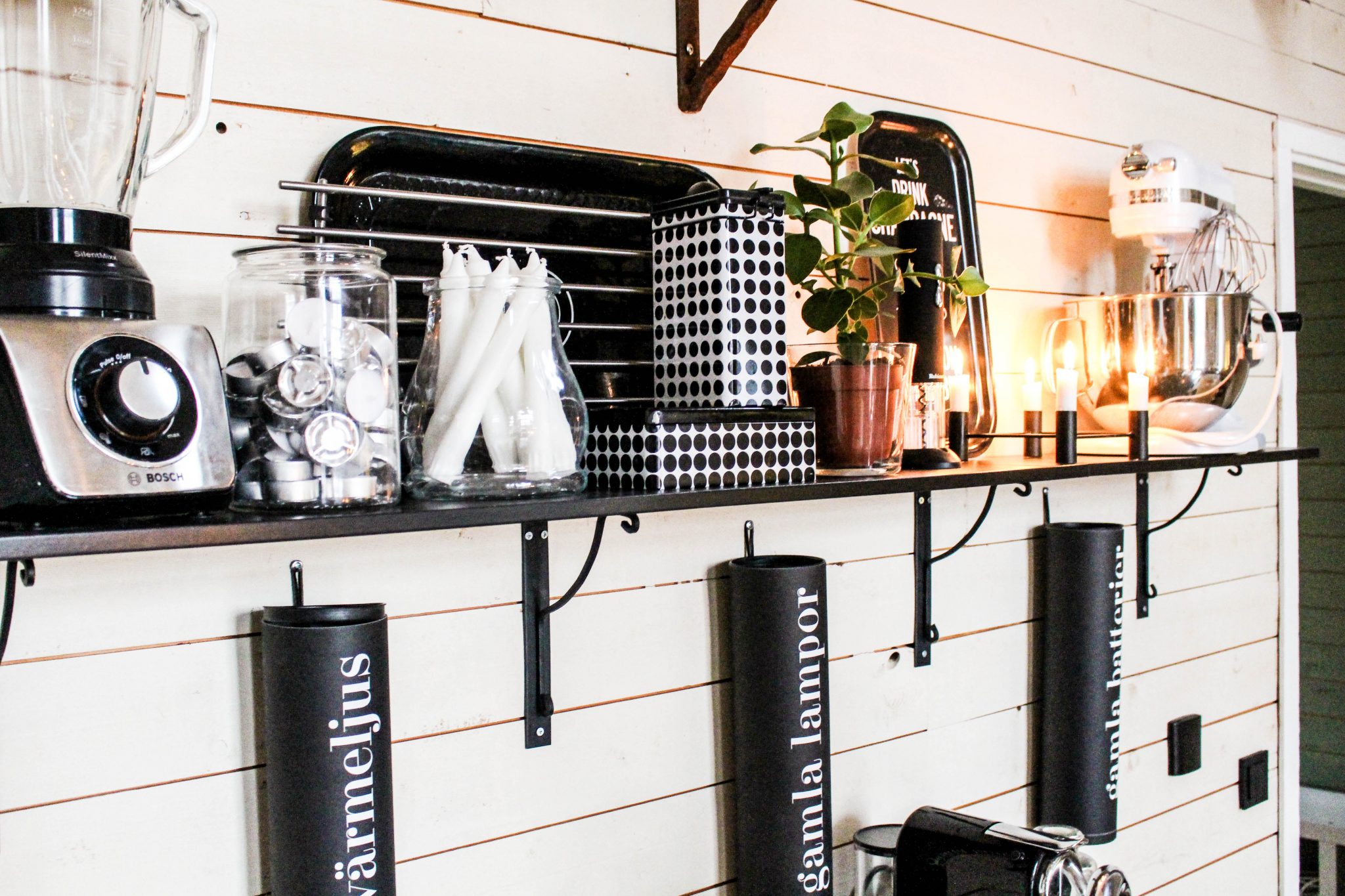 Lovade ju visa er lite från hyllan som blev klar igår. Så nöjd, tror det blir en till ovanför men måste klura lite på den. Detta är ett sätt att få undan stora skrymmande grejer från bänkar och skåp nämligen. Sånt som man inte använder hela tiden varje dag kan gott och väl få stå på en hylla istället.
