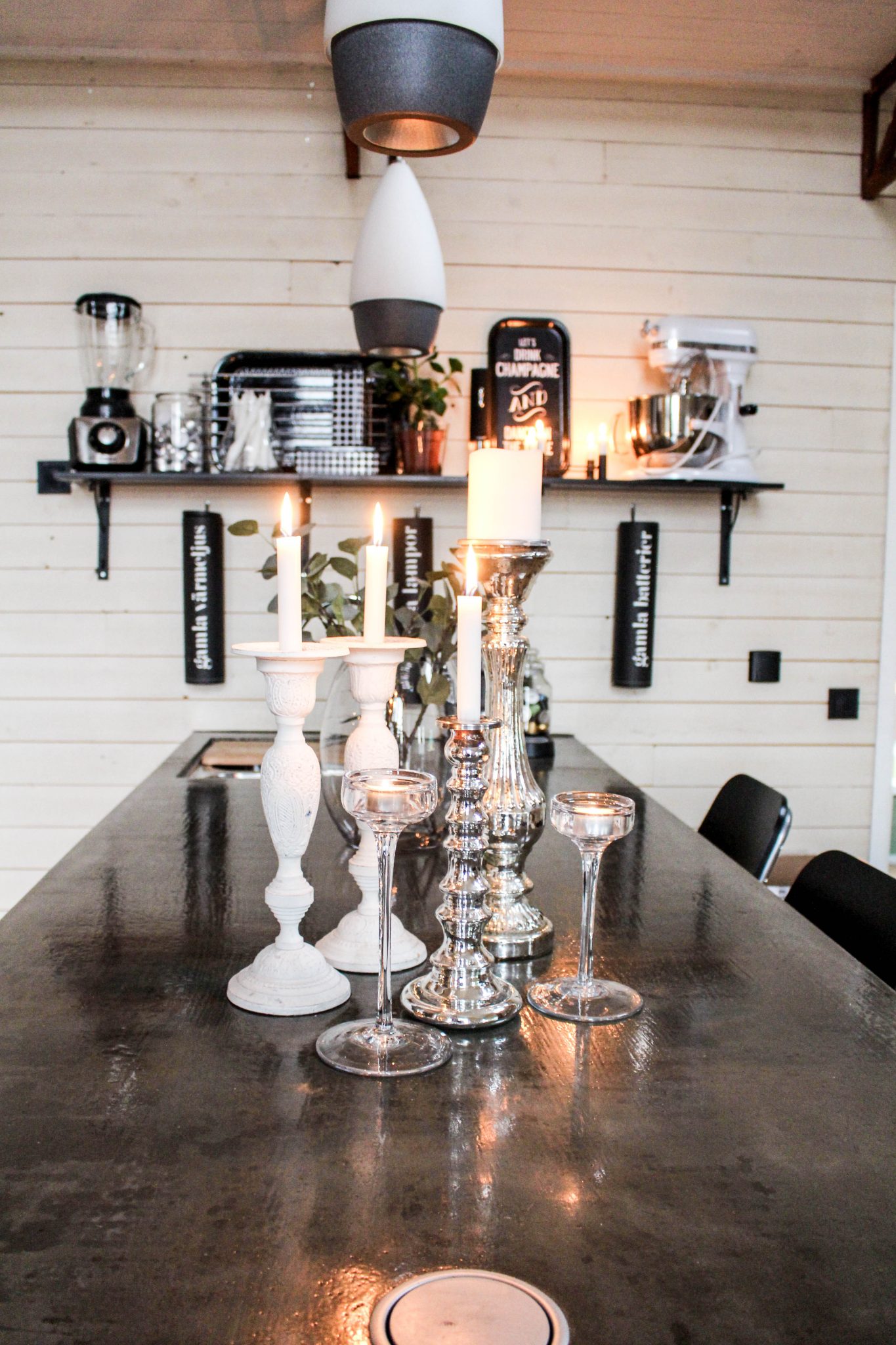 Har ställt massa ljus på betongbordet som lyser upp så fint här hemma. Det är en härlig känsla när man börjar komma i ordning. Det är då man kan börja njuta av allt ordentligt. Alla flyttkartonger är i stort sett borta nu förutom lite badrumsgrejer och lite kläder. Jag håller på och filar på en lösning inne i vår lilla lilla walk in closet. Har fått leka professor Baltazar halva natten (ni som är födda på och innan 70 talet borde veta vem han är). Haha….