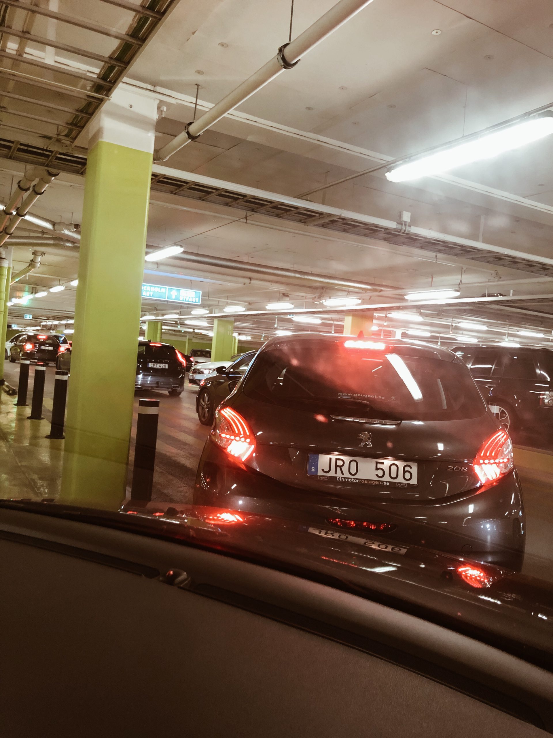 Dock så tog det liiiiite tid att ta sig hem. Närmare bestämt nästan 1 timme att stå såhär och vänta. Helt sjukt! Det var totalstopp inne i garaget. Marcus, Tereces man sa till oss att inte ställa oss där men vi tänkte att vi ställer oss nära utfarten, inte fasen hjälpte det. Aja, hem kom vi till slut!