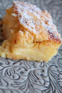Den här kakan är helt fantastisk. Vanilj och citronrutor i långpanna är något heeeelt annat när det kommer till goda kakor. Den har liksom allt. Lite krispigare yta, krämigt inre som smakar vanilj och så mördegsbotten som man bara inte kan låta bli att älska. Min svägerska skrev ett sms till mig igår kväll om att det var den absolut godaste kakan hon någonsin ätit!