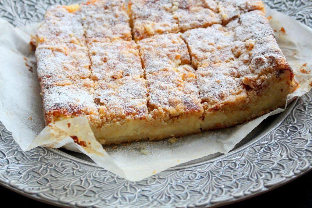 Smula sedan resten av mördegen uppepå fyllningen. Skjuts in i ugnen i 30 minuter. Fyllningen kommer fortfarande vara lite ”dallrig” när den tas ut ur ugnen men låt den svalna av så stelnar det lagom.- Pudra över lite florsocker. Ät och njut för allt vad du är värd.