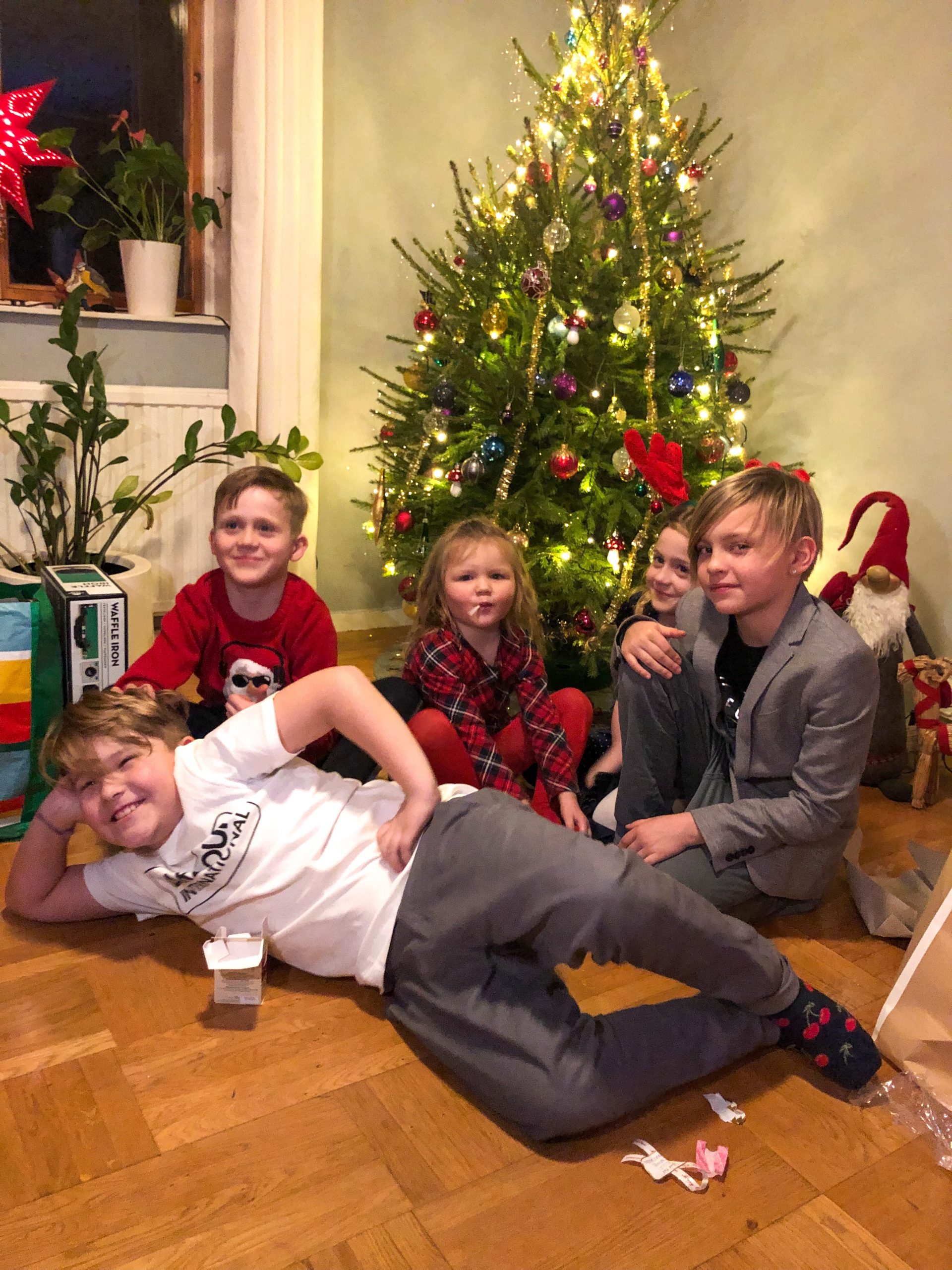 Gänget som julen egentligen handlar om helt och hållet! Barnen! ❤️ Så kul att dessa sötisar har varandra när vi ses. Här hade Milo kastat av sig sin jultröja för att ha den coola märkes t-shirten han fick av brorsan i julklapp.