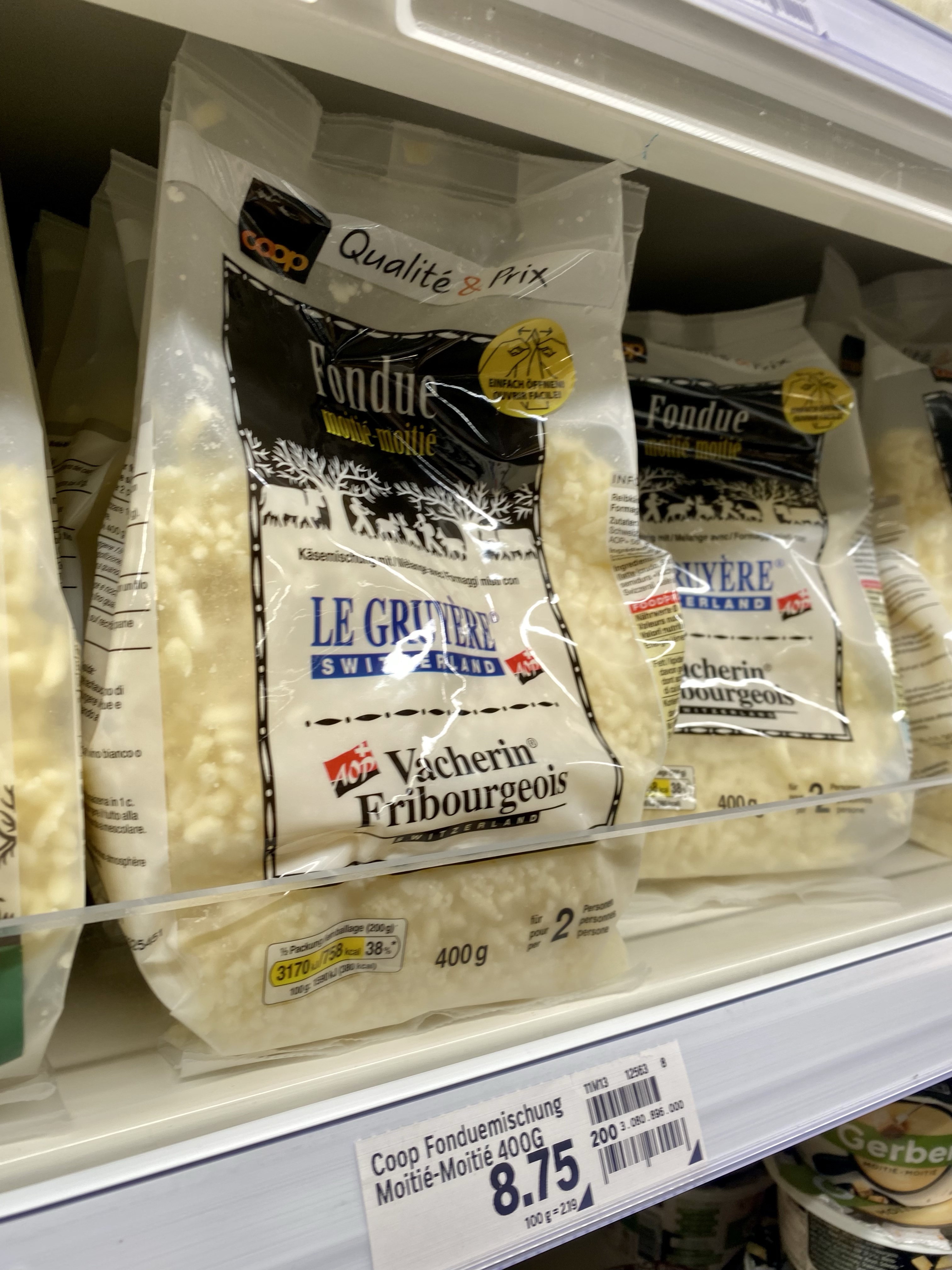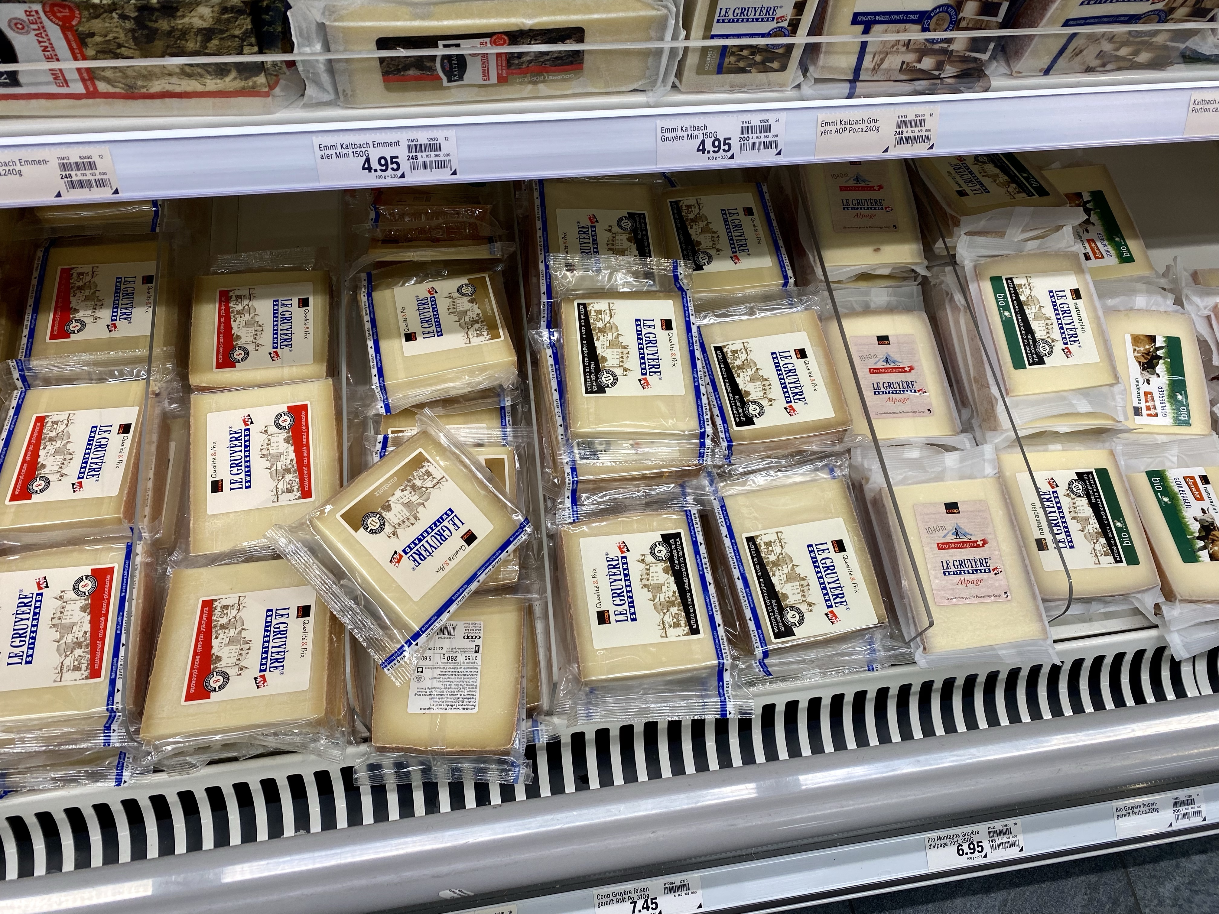 Som ni ser så är det rätt dyrt allting. En sån här ostpåse kostar 90 kr. Men man får inte glömma att det är Gruyere heller. En liten bit i Sverige kostar ju 60 spänn typ. Men överlag är Schweiz dyrare än Sverige. På alla sätt, bensinen är det enda som är lite billigare än hemma.