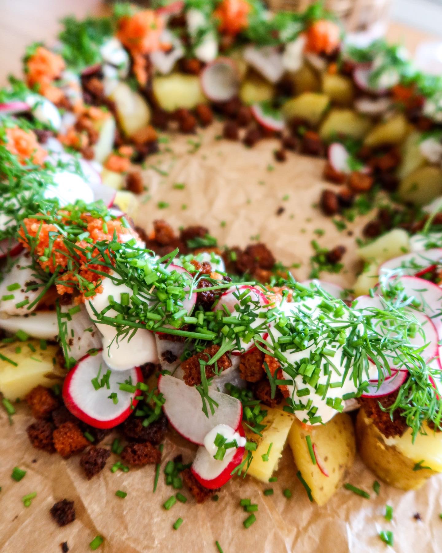 Vi började med sillkransen som jag gav recept på igår. Den var magiskt god! Tips tips! Funkar fint under hela sommaren. Sedan grillade vi och åt min färskpotatissallad till med brynt smör dressing.