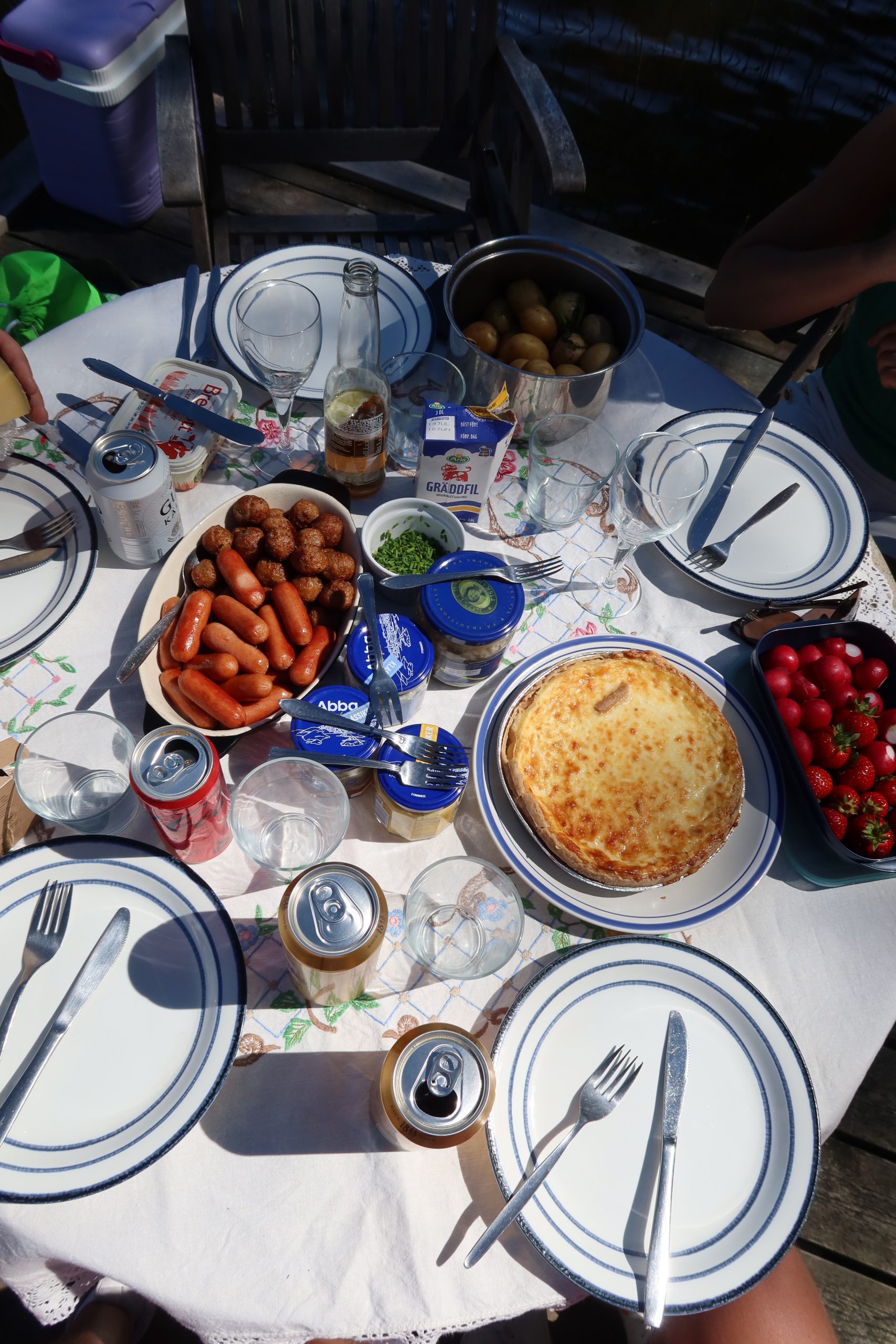 Sedan blev det båt ut till Bryggholmen, Mange (stora barnens pappa) har sina föräldrars sommarstuga där. Så där började vi med en brygglunch. Hur mysigt?
