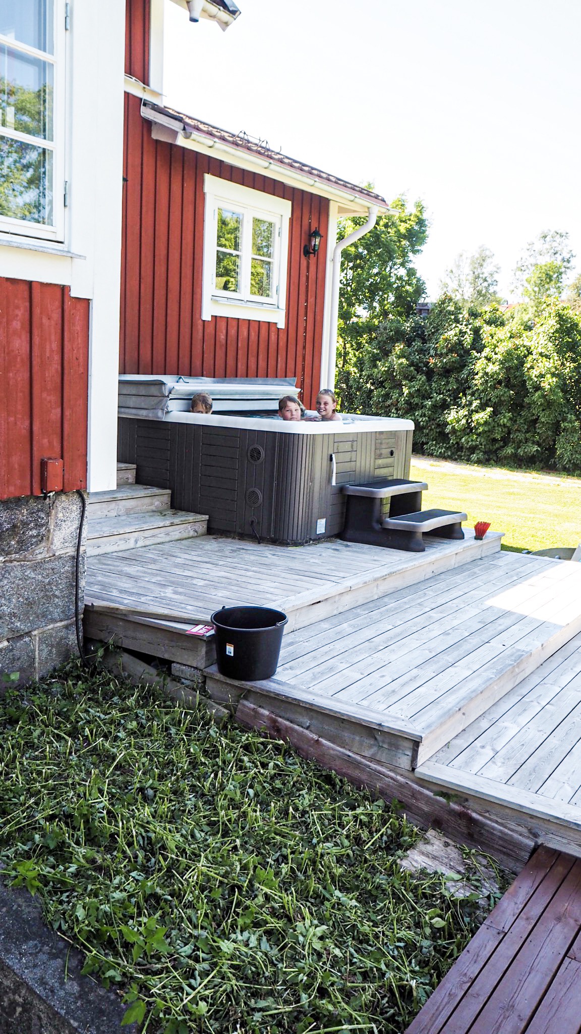 Hoppas att ni haft en mysig midsommar. Vår blev allt man kan önska sig. Lugn, skön, god mat och vänner. Milo har vi knappt sett röken av. 3 kompisar som är i ungefär samma ålder. Dom har åkt båt, badat i poolen, i bubbelpoolen, spelat FIFA, hoppat studsmatta och spelat fotboll. Kl halv 1 inatt sa jag åt honom att det var dags att följa ned hem till husvagnen. Då satt dom i bubbelkoppen. Små lyxlirare som njuter av livet.