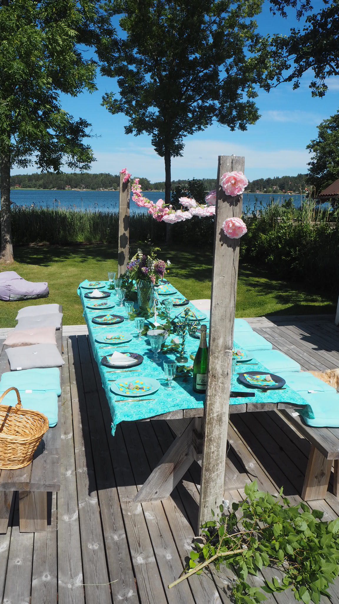 Det fixades bord nere vid vattnet. Allt är så perfekt. Läget, stilen ja men allt verkligen. Solen sken så det blev dessutom perfekt väder. Vad mer kan man önska sig?
