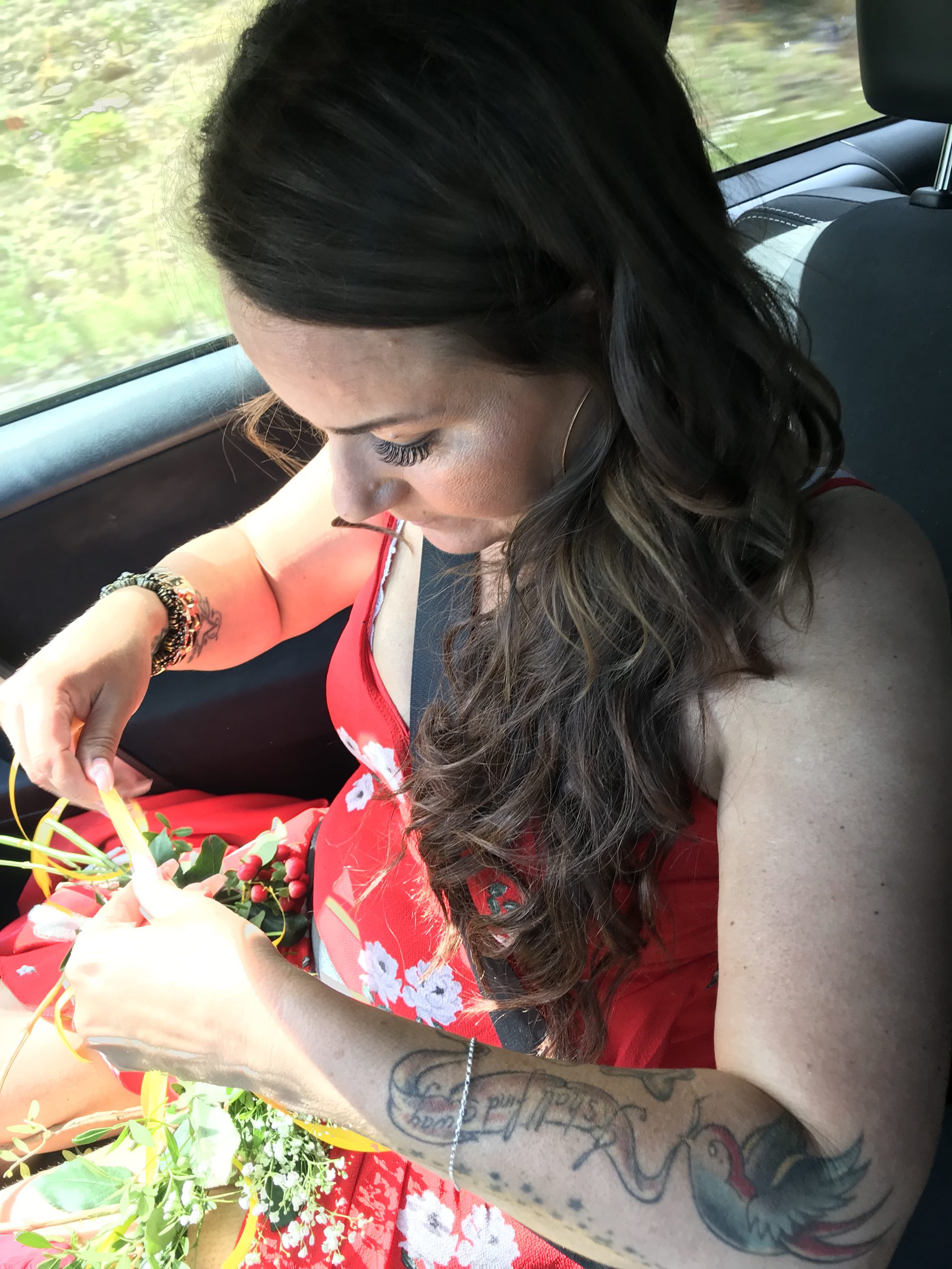 Jag meckade ihop en blomkrans till mig i bilen. Jäklar vad effektiv man kan vara alltså.