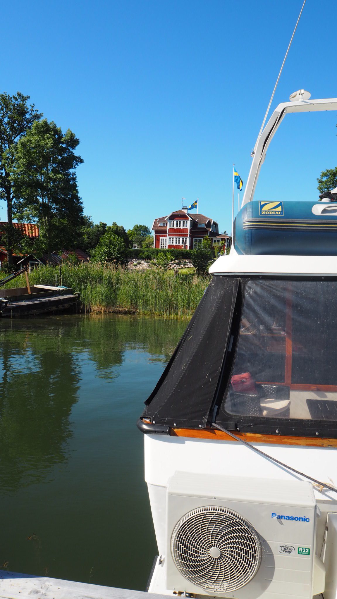 Mot kvällningen samlades vi nere vid bryggan. Tog också en rundtur med båten. Satt och pratade, kikade på deras as till båt. Vet ni att det är som ett helt hem? Med diskmaskin, ordentligt kök med spis och badkar t.o.m. Så härligt!