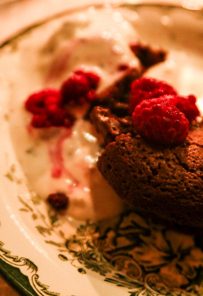 Till efterrätt blev det fondant med glass och hallon. Hur gott som helst. Som sagt, har några recept som jag ska tigga åt mig så kan jag bjuda på dem här till dig.